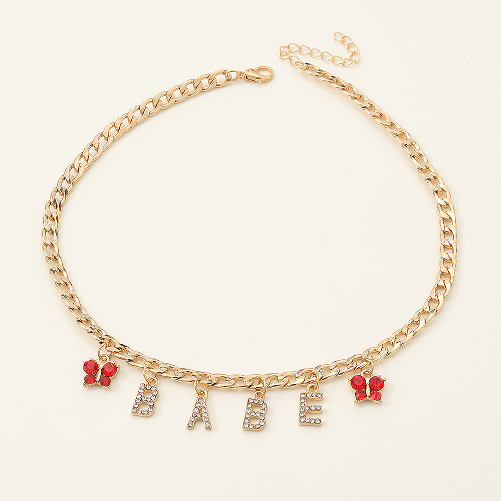 クロスボーダー子供アルファベット蝶小众デザインセンスネックレス女性ins冷たい风ファッション気质ネックチェーン锁