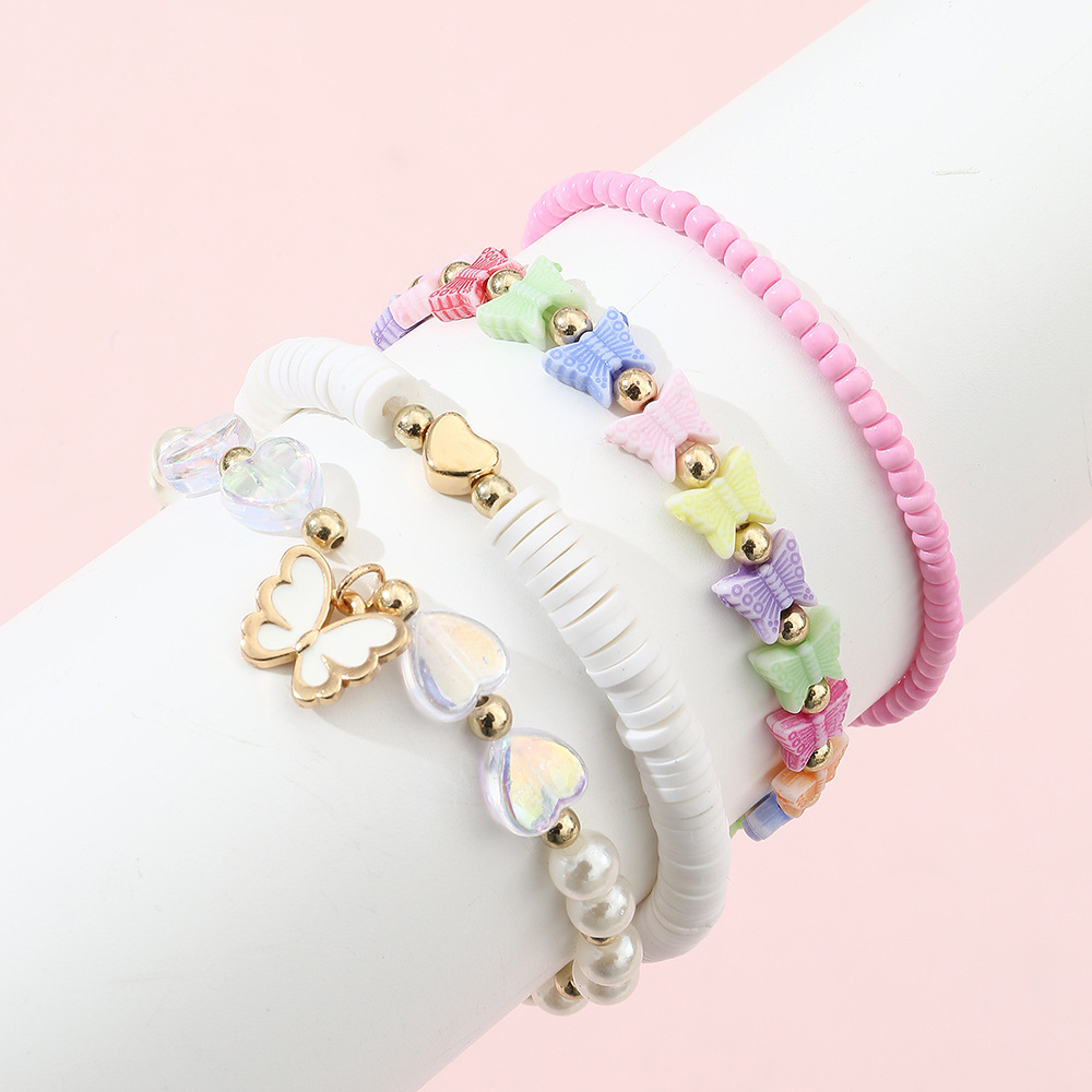 クロスボーダー子供韓国式星愛花蝶数珠ブレスレットセット女性ファッション大衆デザイン感手飾り