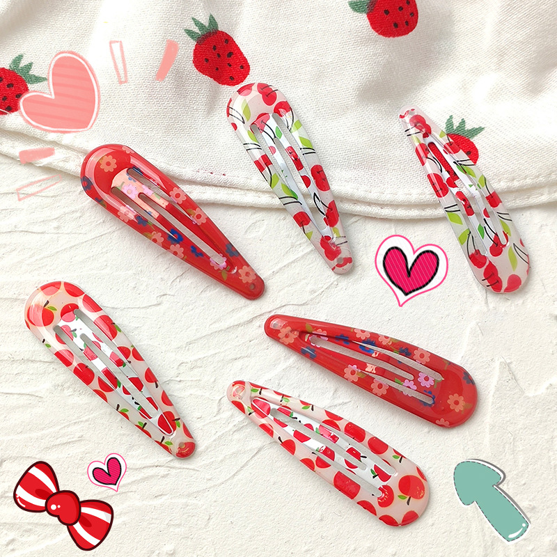 韓国版夜市の屋台のさくらんぼのヘアピンのピンクのbbクリップの前髪クリップの女子学生の子供の元気な少女の髪飾りの6つ