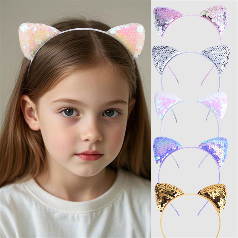 Amazon 子供用クロスボーダー漫画甘いヘッドバンドヘアピンフリップ魚鱗スパンコール猫耳アクセサリーヘッドバンド