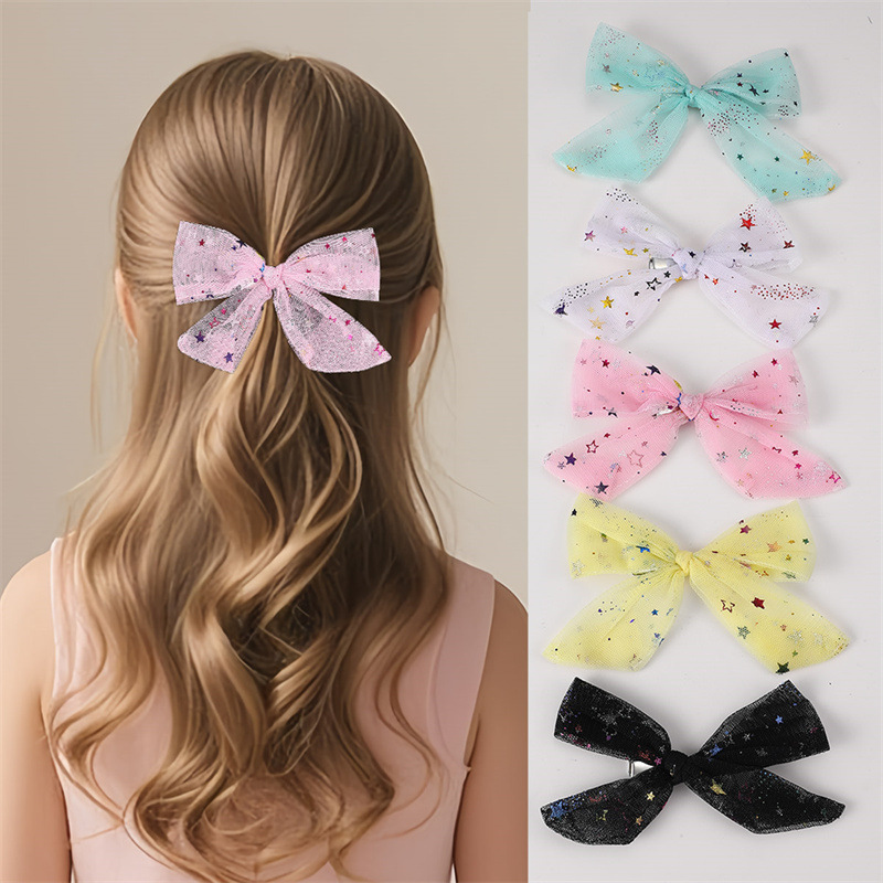 Amazonクロスボーダーベストセラー蝶結びヘアアクセサリーメッシュ漫画星と月スパンコール蝶女の子ヘアピンセット