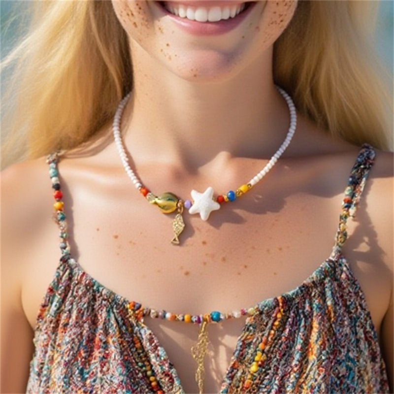 YSN1745 クロスボーダーヨーロッパとアメリカのボヘミアンライスビーズネックレスオーシャンビーチスタイルヒトデレディースネックレスジュエリー