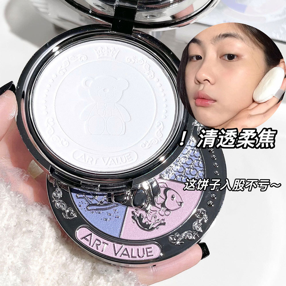 ART VALUE熊騎士柔焦粉餅霧面つや消しカバー防水不カード粉化粧しない蜜粉女