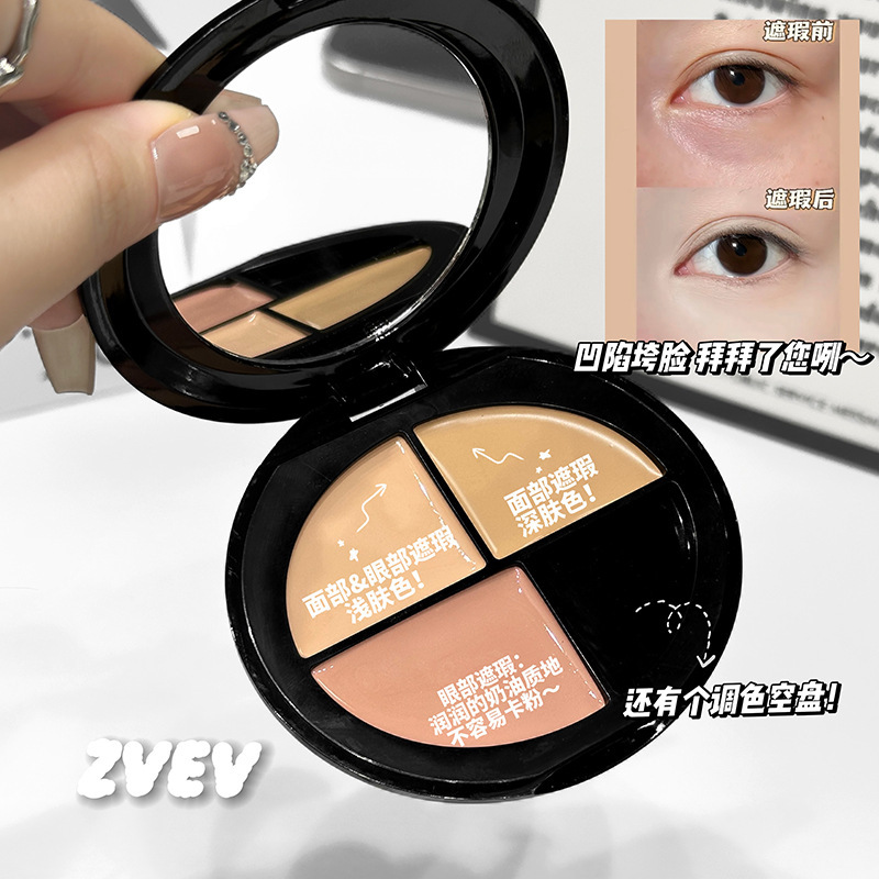 ZVEV クリア 3 色コンシーラー、自然な立体的な肌の色合いの修正、クマ、ニキビ跡、涙溝のカバー、明るくするファンデーション