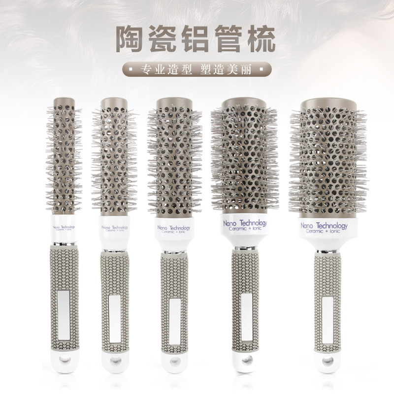 メーカー卸売セラミックアルミチューブ巻き髪の形の櫛ナイロンのマイナスイオンのふわふわした形の美容櫛の卸売り