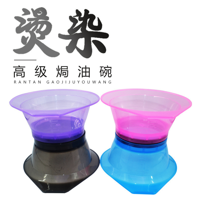 髪廊のグラタン染めの髪の碗をかき混ぜてクリームを染めます。