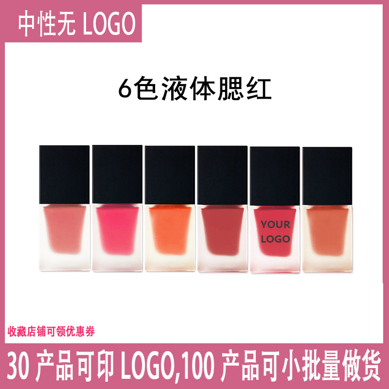 国境を越えたメーキャップ中性ロゴなし6色の液体頬紅自然裸化粧頬紅液が肌の色アマゾンを明るくする