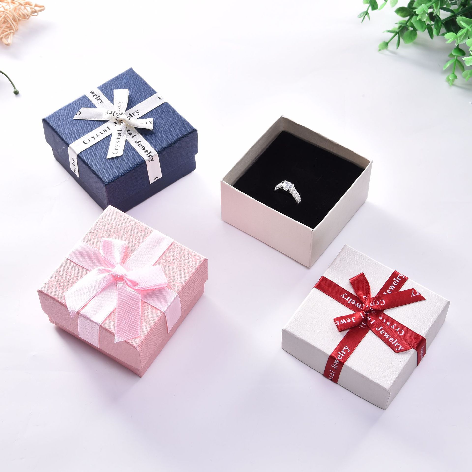 カラー高级感英语蝶結びジュエリーボックス纸包装ボックスリングジュエリー诞生日プレゼントギフト空ボックス