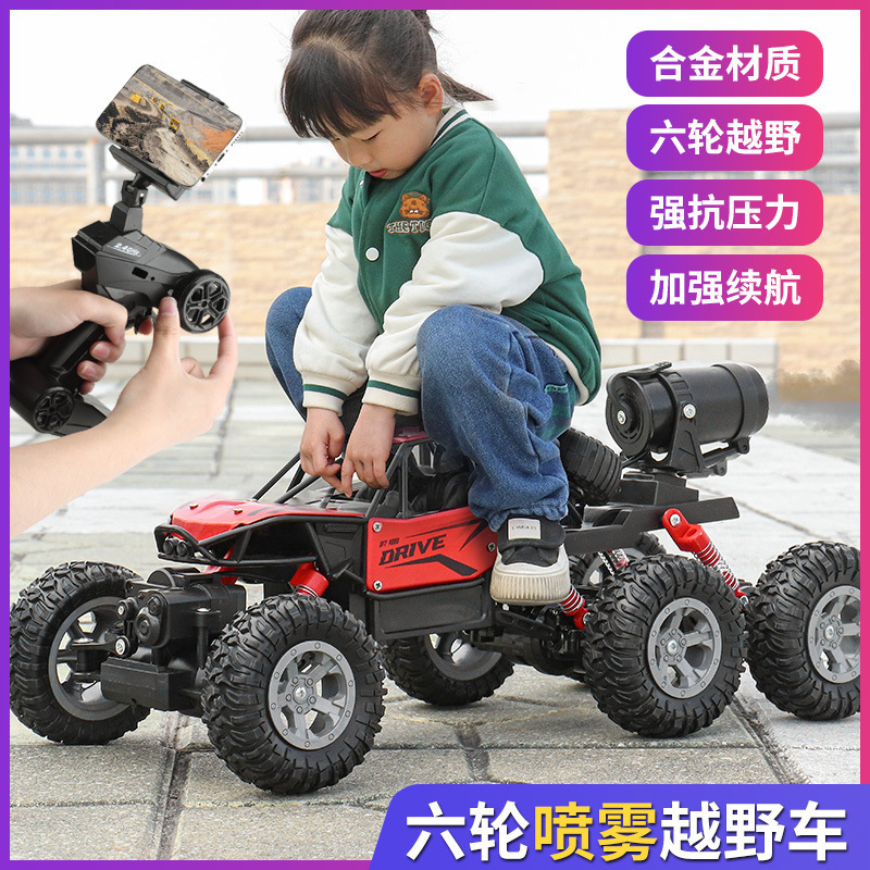 自動車のオフロード車を遠隔操作して電動の高速四駆を充電して車の男の子のレースの子供のおもちゃの車を登ります。