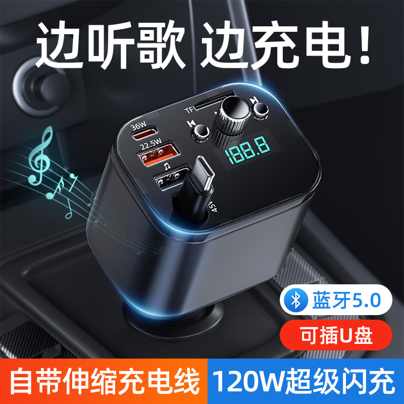 Bluetooth レシーバー ロスレス音質 MP3 プレーヤー U ディスク TF 車の充電器ケーブル付き超高速充電伸縮ケーブル