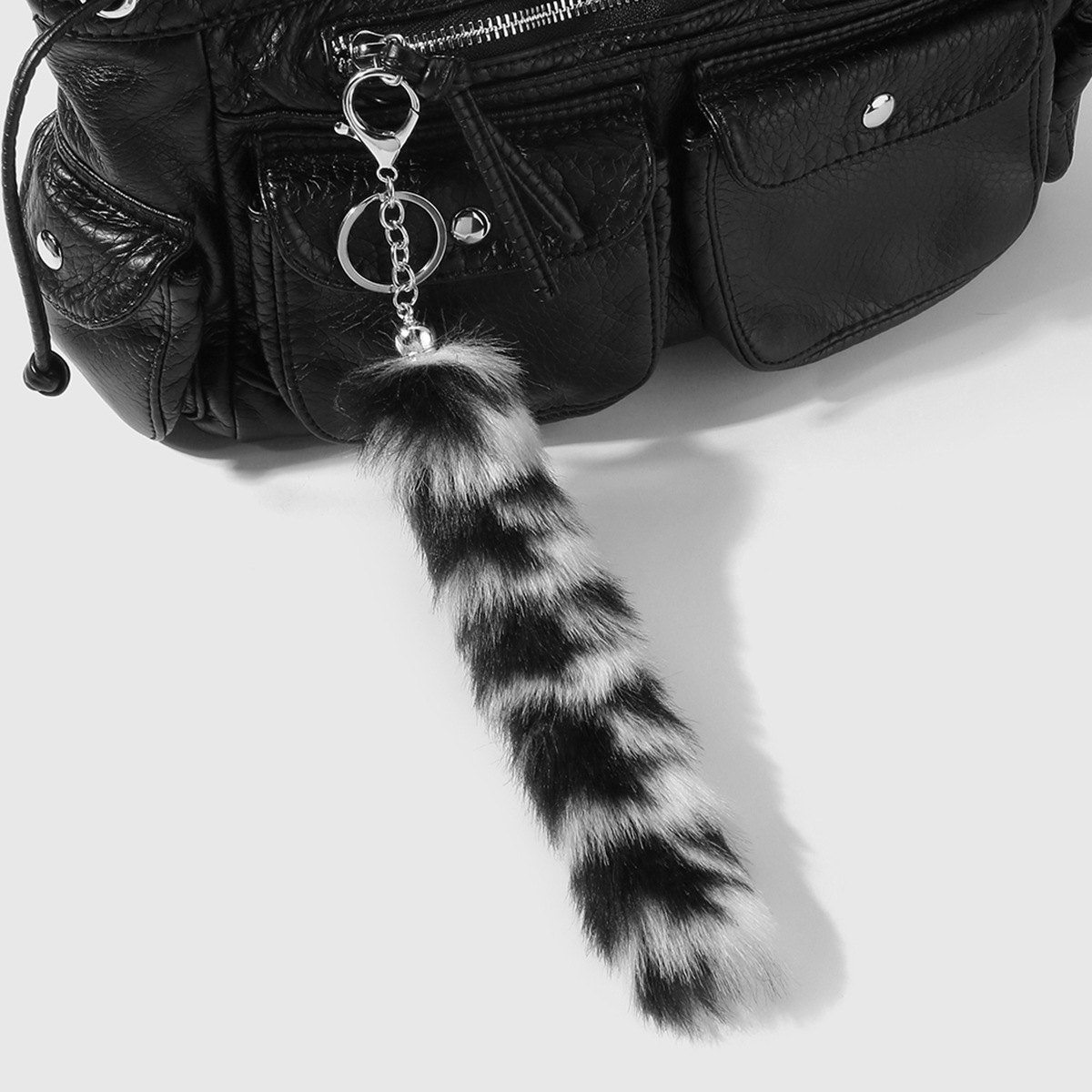 新しい ins パーソナライズされたレトロな甘くてクールなスタイルの模擬ヒョウ柄グラデーションぬいぐるみテール DIY キーホルダーバッグペンダント
