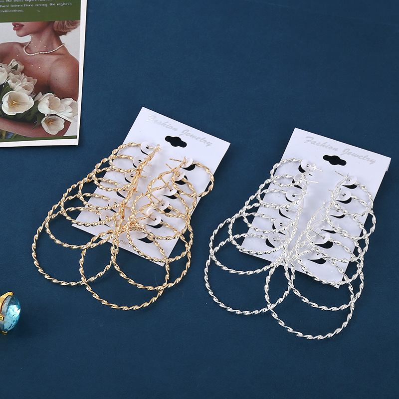 欧米の百合のイヤリングの女性はやせているネットの赤いネットの1セットの6対の光沢のcリングの異なっている大きさの耳の輪の組み合わせのシンプルなファッションを現します。