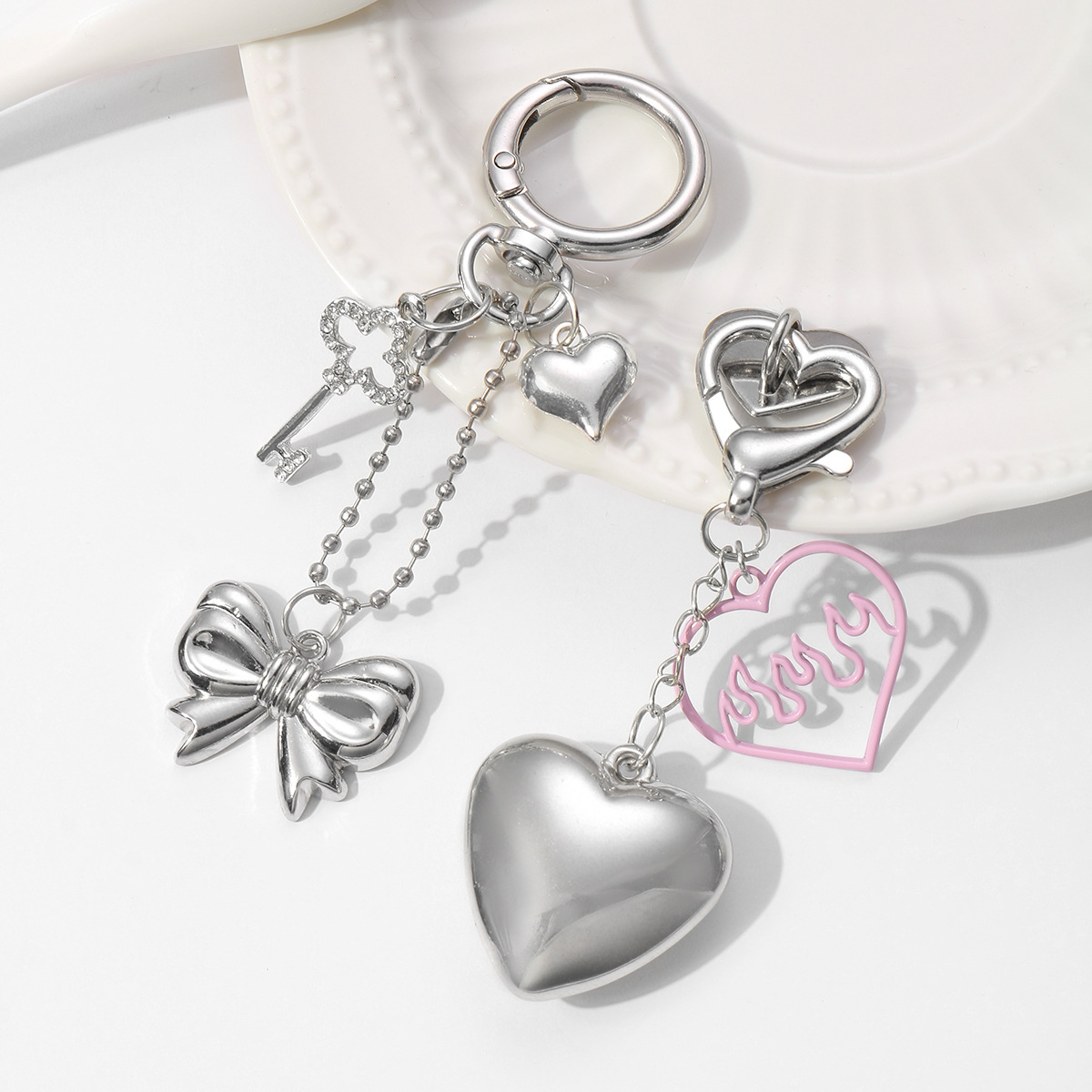 新しい y2k 個性甘い高価値シルバーチェーンリボンハートスターレースリボン DIY バッグペンダント