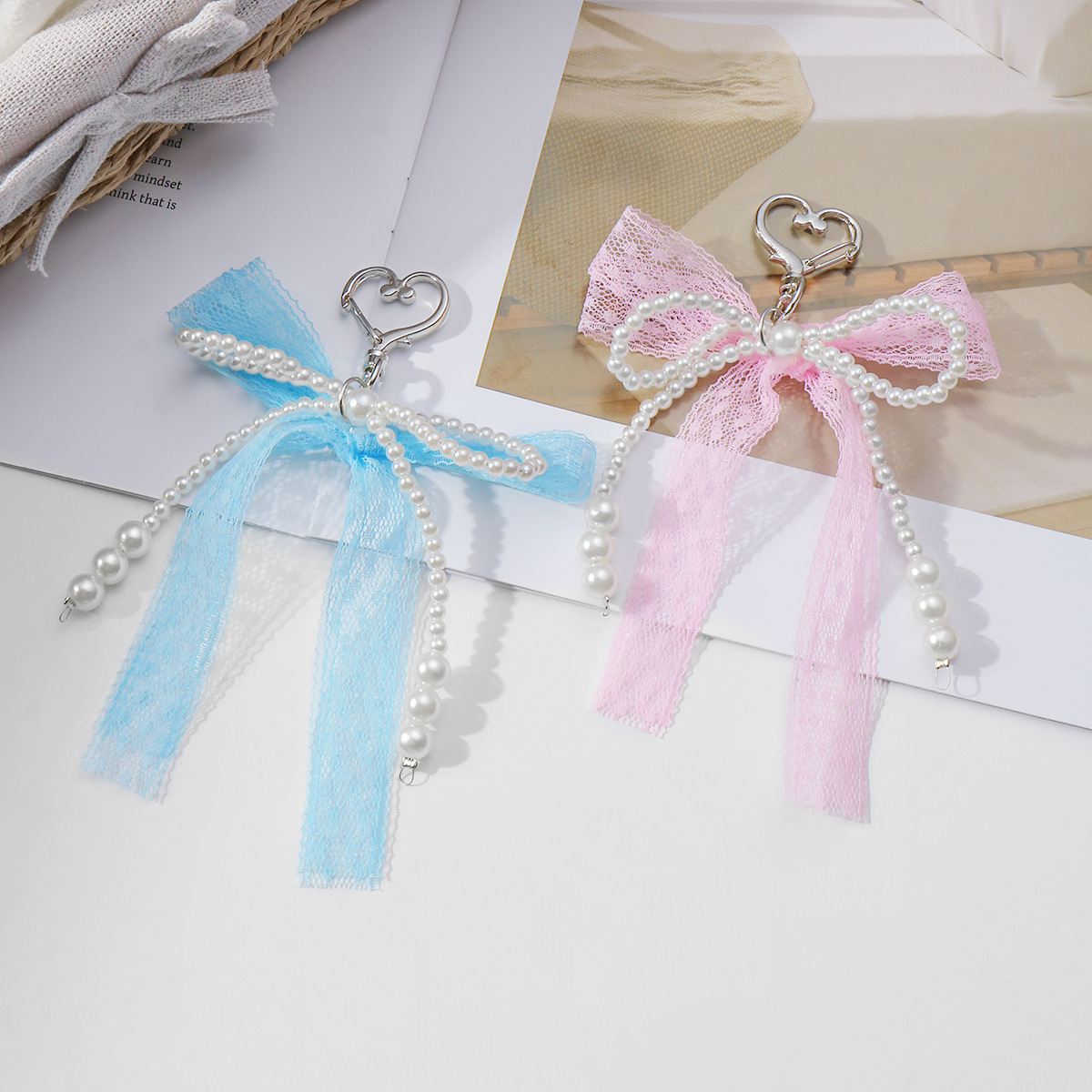 クロスボーダーの爆発的な甘いカジュアルな組み合わせの手作りのビーズは真珠のレースの蝶結びの愛のキーホルダーに似せています。