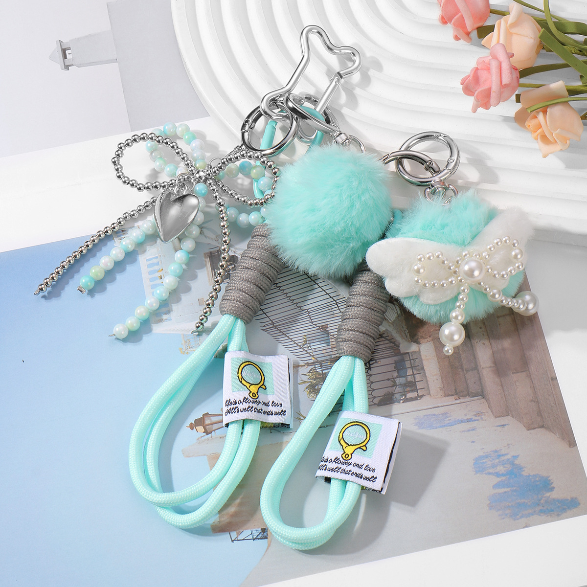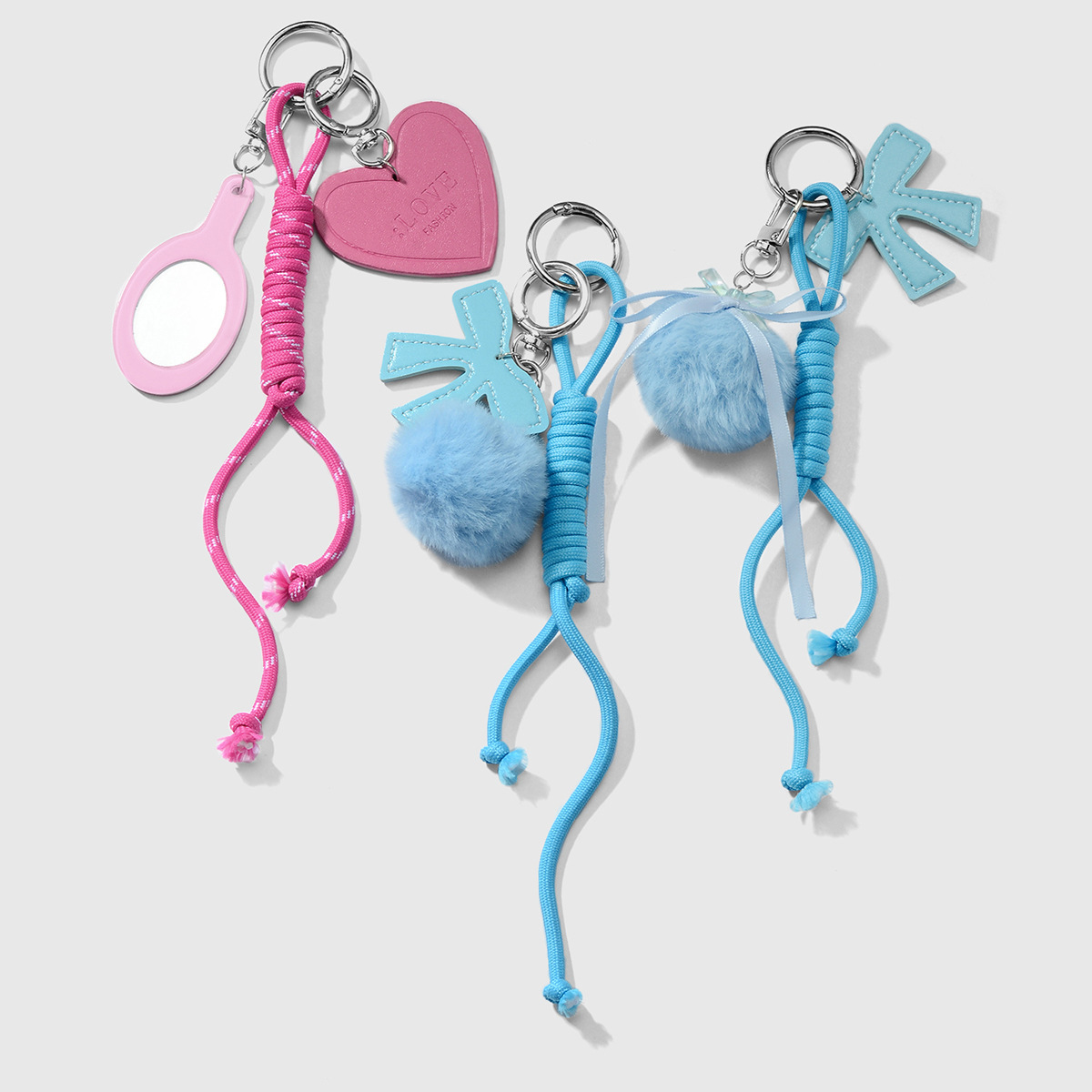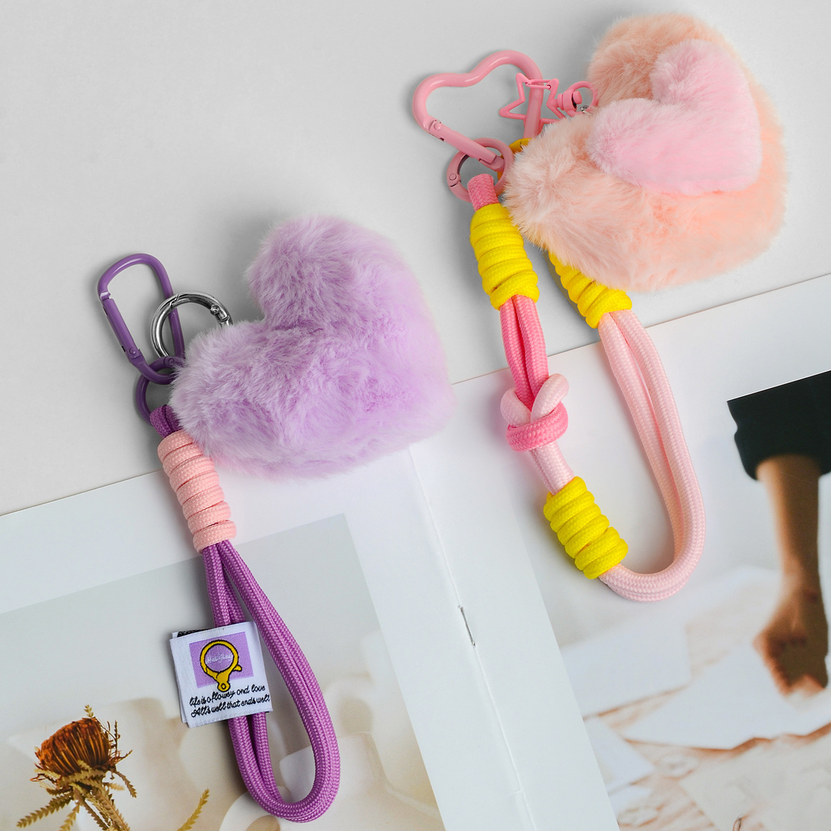 クロスボーダー爆金ins韓系精緻甘美高顔値毛毛愛吊り紐DIYキーホルダー