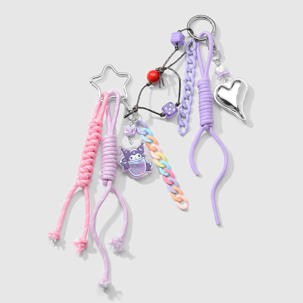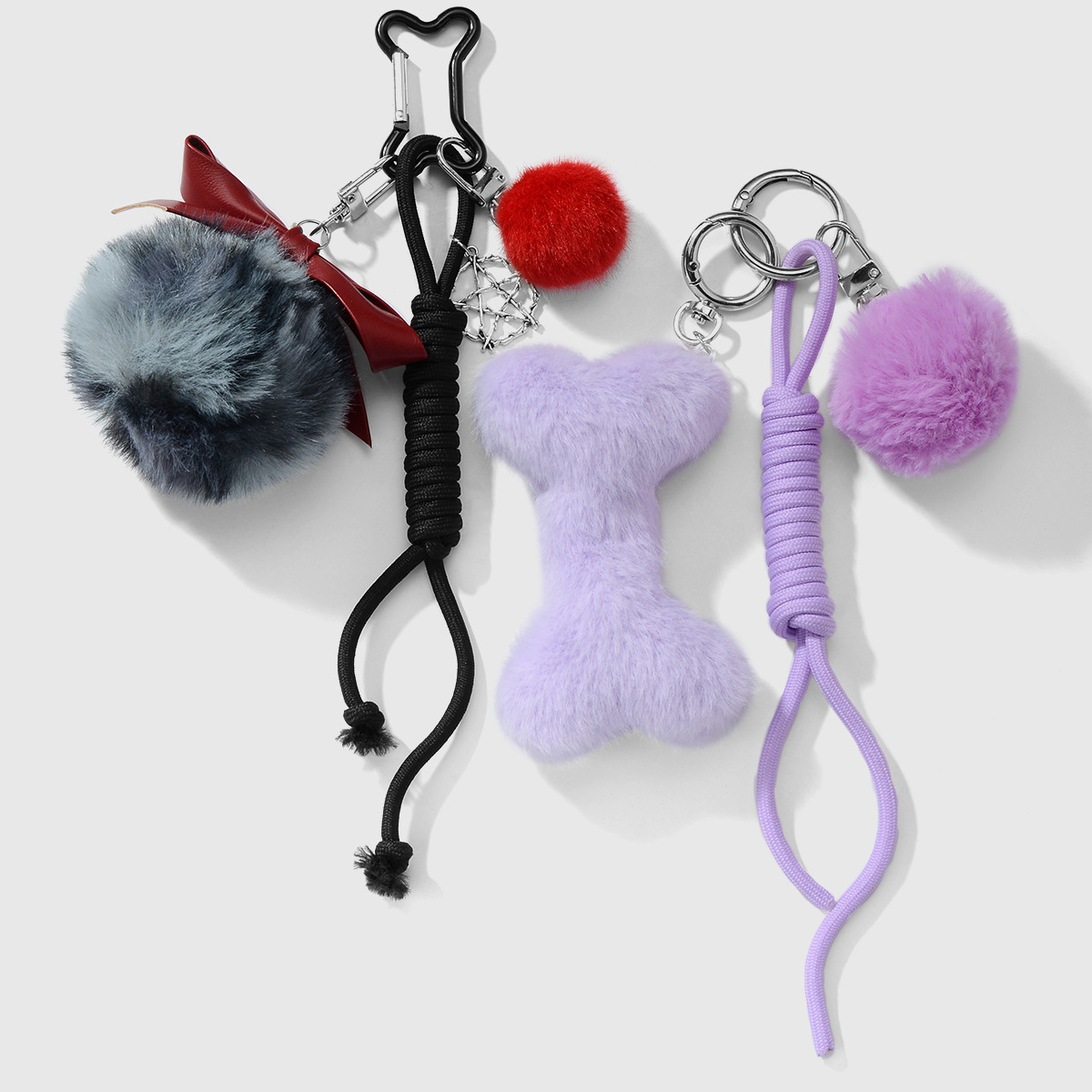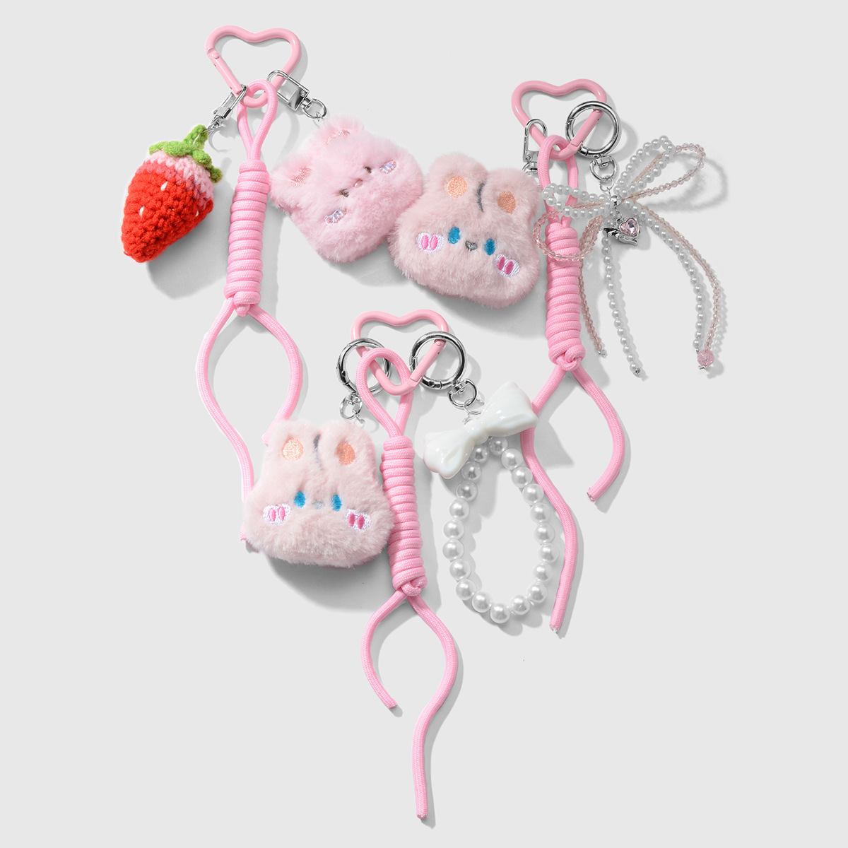 クロスボーダー爆金ins韓系精緻甘美高顔値毛毛愛吊り紐DIYキーホルダー