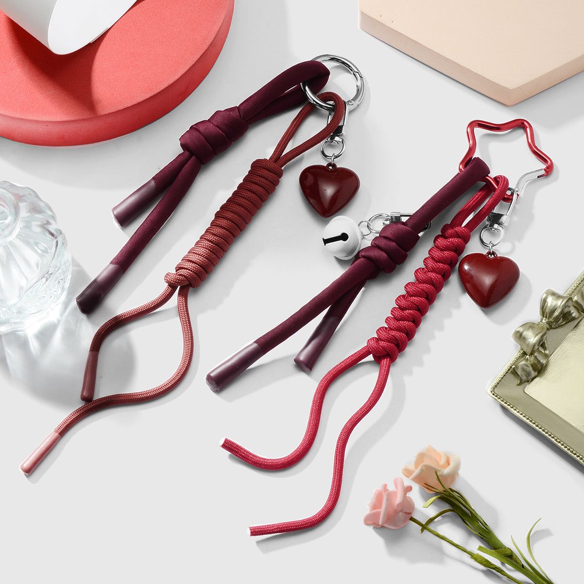 クロスボーダーの爆発金の甘いクールなファッションの高い顔の値のワインの赤色は登山の縄の愛の小さい鈴の鍵を編んでペンダントを掛けます。