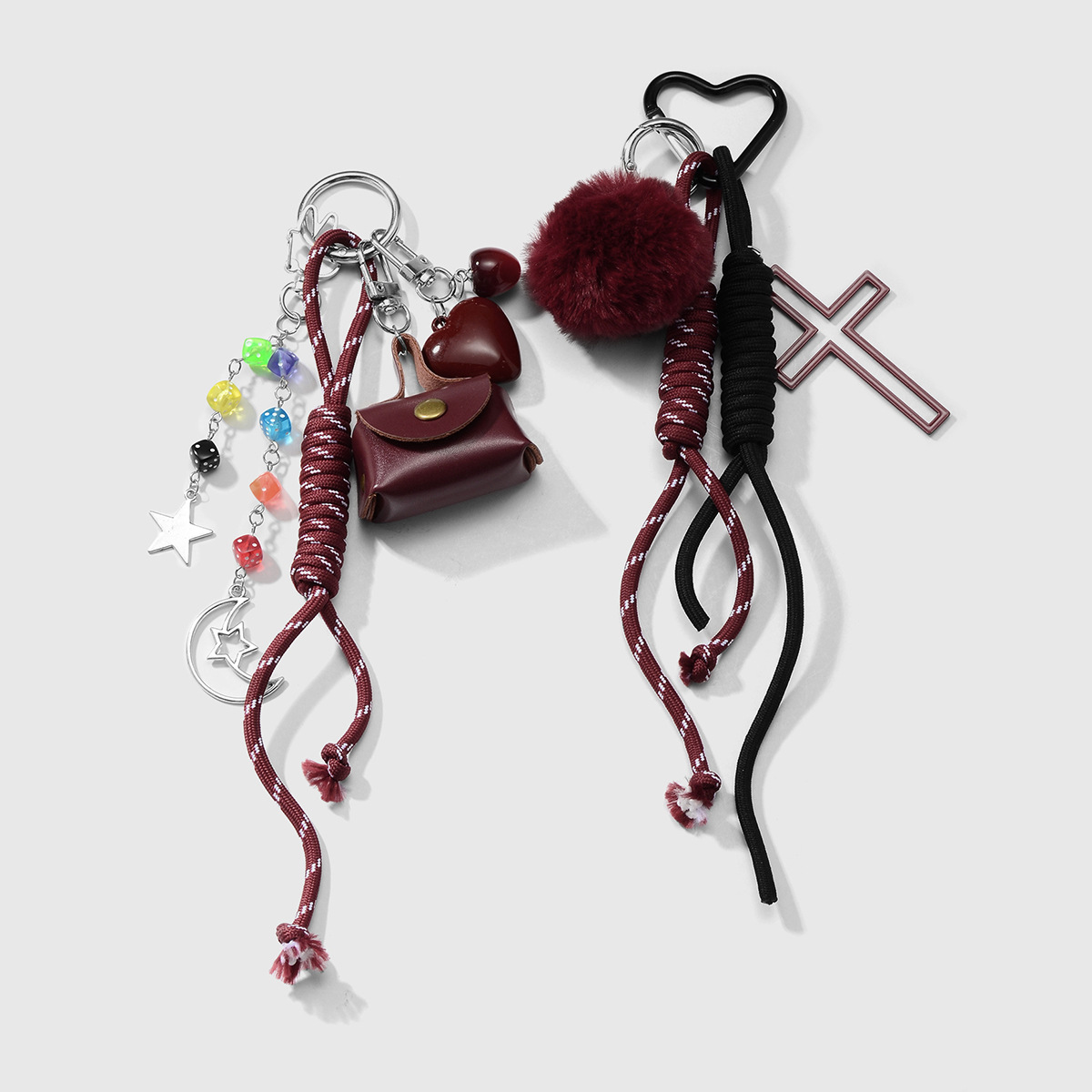 クロスボーダー爆発金甘いクールファッション高颜値ワインレッド毛玉カラーふるい愛月小包キーホルダー