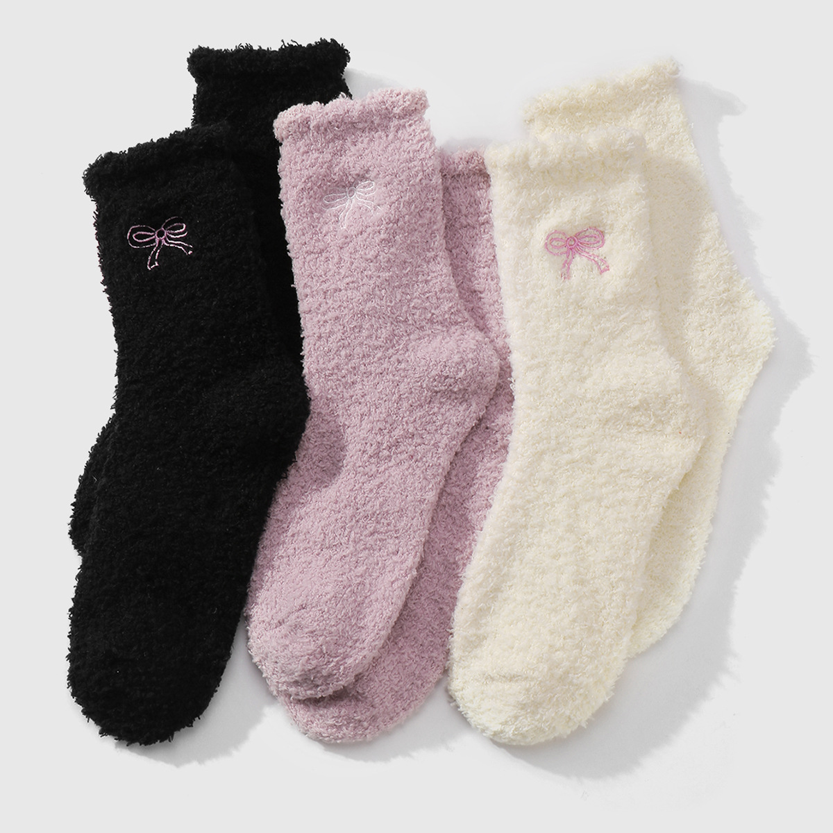 クロスボーダーの起爆金はシンプルで洗練された高颜値多色パイル刺繍蝶ネクタイの靴下の中筒靴下の睡眠靴下である