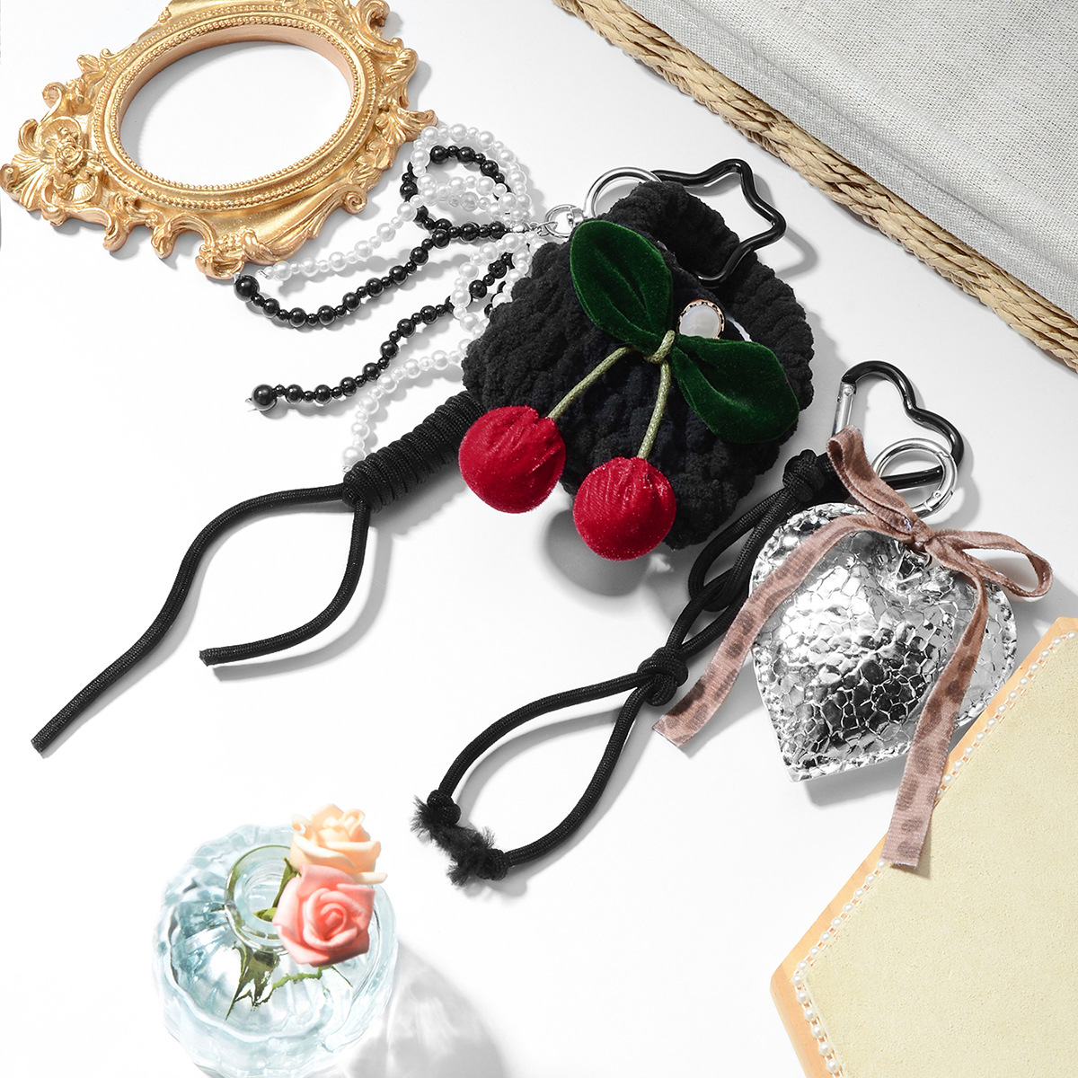 クロスボーダー爆金ins甘くてクールで洗練された銀色チェーンいばら星蝶ネクタイさくらんぼ愛キーホルダー