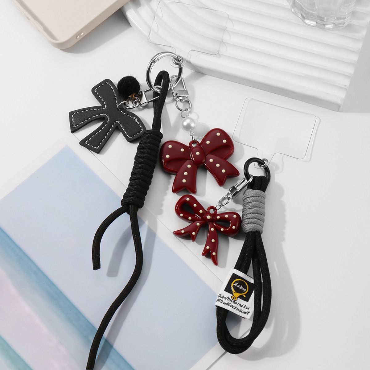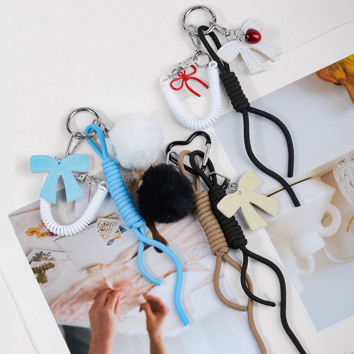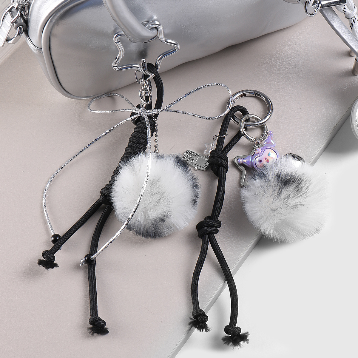 クロスボーダー爆金ファッション個性精巧な白黒毛玉革蝶結び編み登山ロープDIYキーホルダー