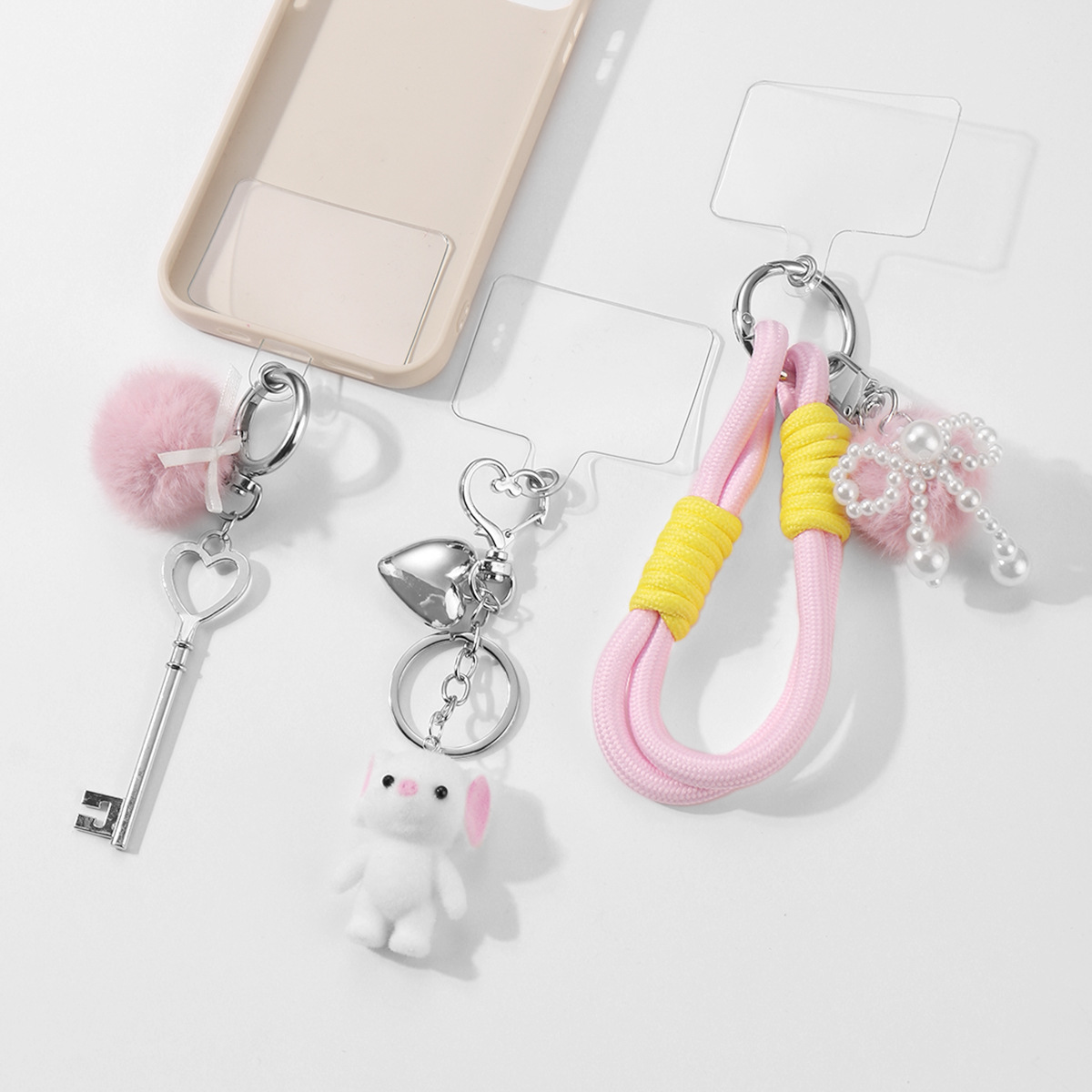国境を越えて起爆したinsの洗練された甘美な顔の値は真珠の植毛の小さい象の毛球の心のキーホルダーの携帯電話のペンダントに似せている