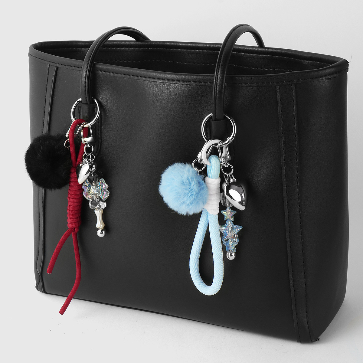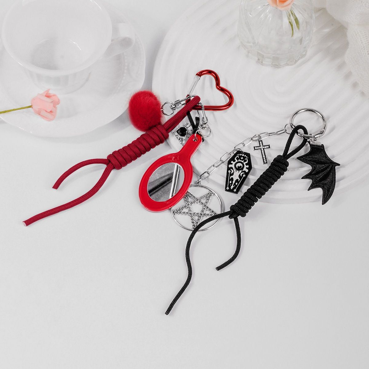 クロスボーダー爆金ins甘美クールファッション黒翼クロス星毛玉鏡DIYキーホルダー