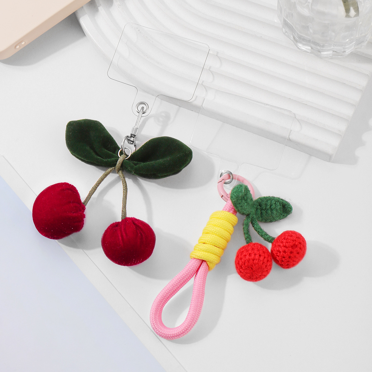 国境を越えて起爆した韓国系の洗練されたファッション的な手編みのシミュレーションさくらんぼの色合わせの吊り紐のキーホルダー携帯電話の飾り
