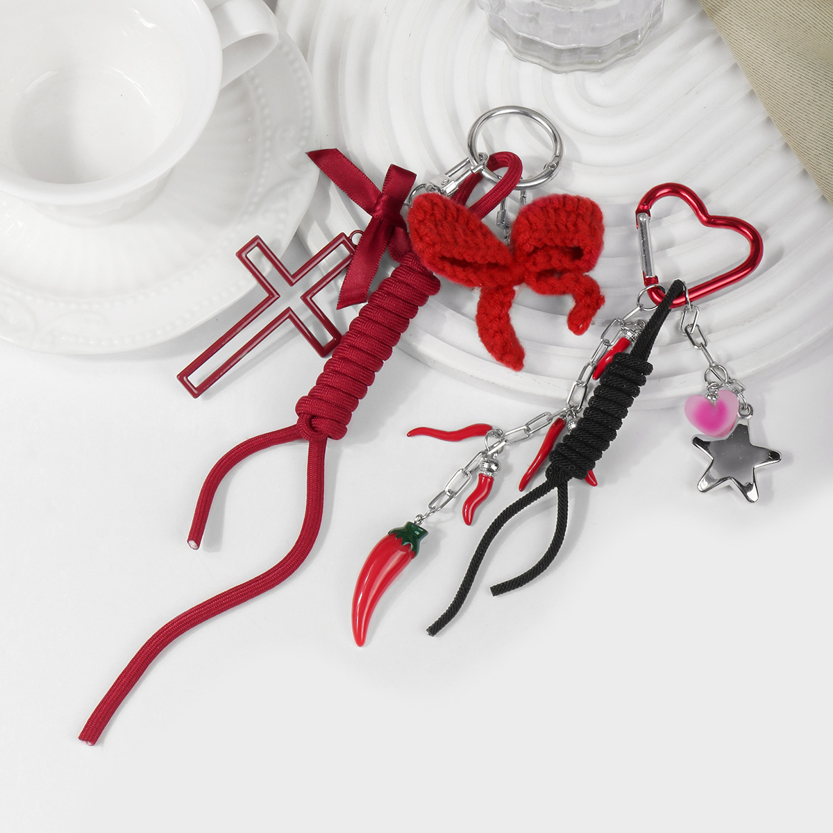 国境を越えて起爆したins韓系甘いファッション赤い鉤織蝶ネクタイは唐辛子星DIYキーホルダーをシミュレートした