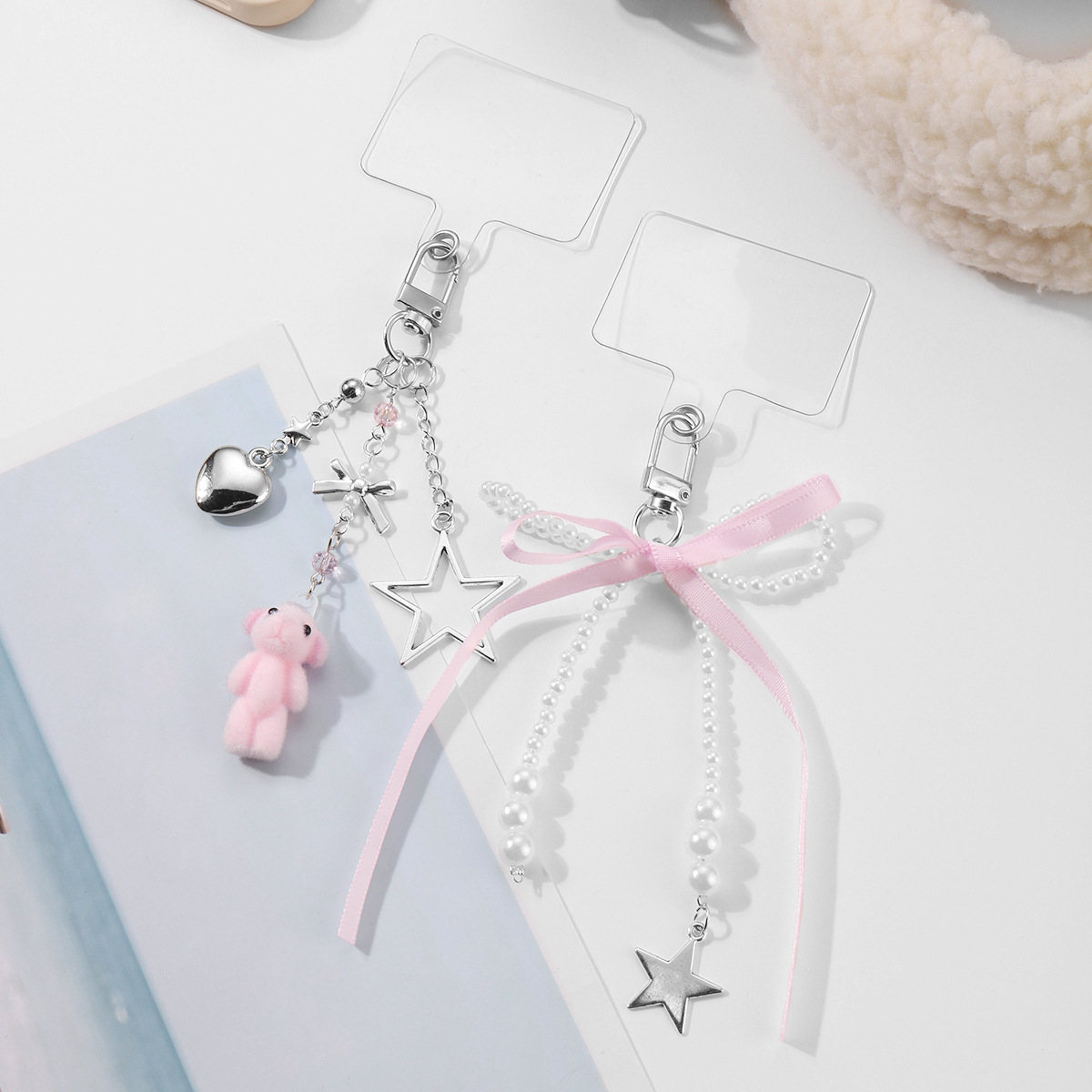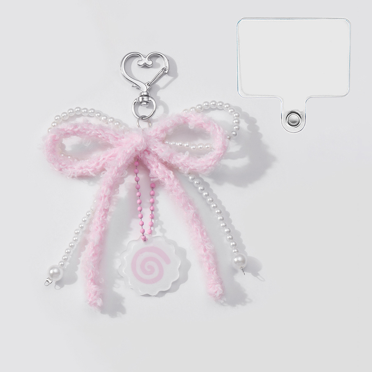 国境を越えて起爆したins甘美な百合は真珠のビーズに似せてリボンの植毛熊DIYキーホルダーを持っている