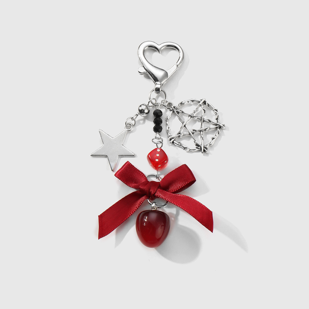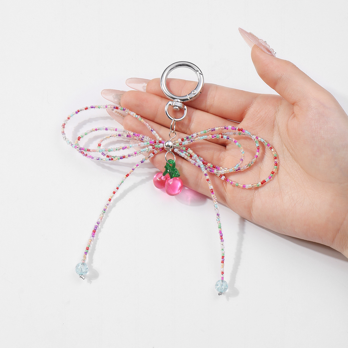 クロスボーダー爆金ins洗練されたファッション高颜値カラー米珠二重蝶ネクタイさくらんぼ星キーホルダー