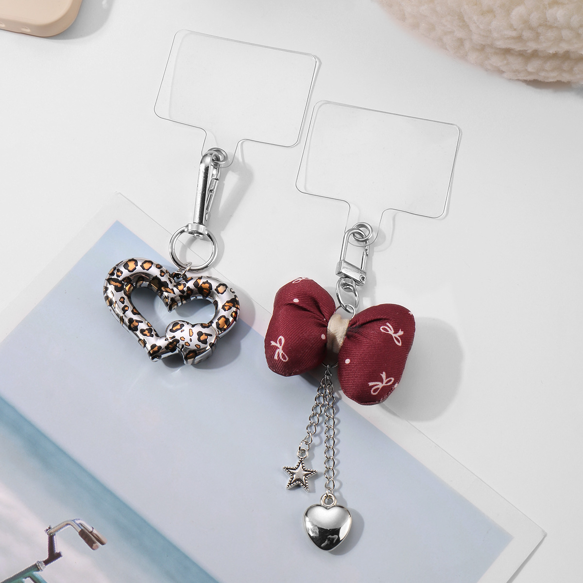 クロスボーダー爆金insシンプルで洗練された甘い銀色CCB豹紋愛蝶ネクタイ携帯電話ストラップ