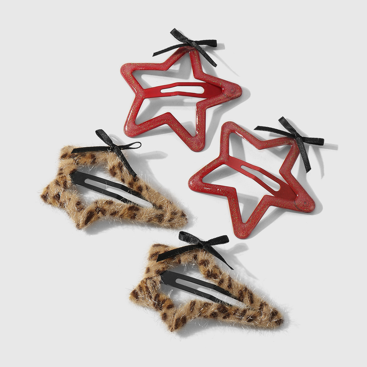 国境を越えて起爆したins韓系ファッション高颜値細閃星豹紋細パイル蝶ネクタイbbクリップサイドクリップ