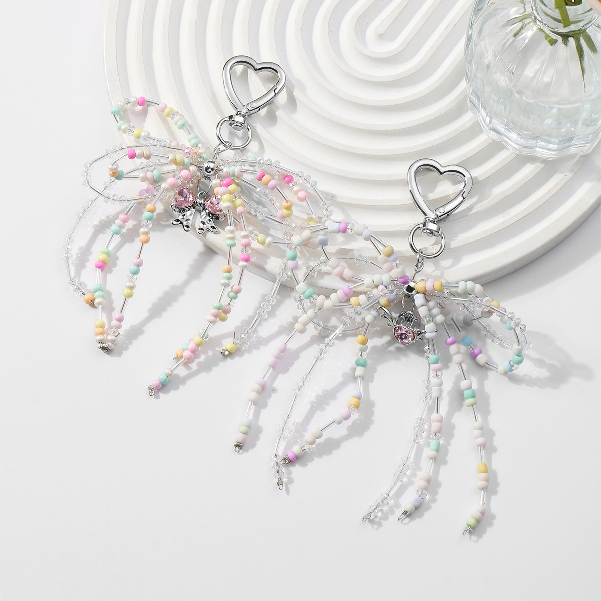 クロスボーダーの爆発物insの精巧な少女の簡単な数珠は水晶のカラーの米の玉の蝶結びの翼の心のキーホルダーをまねます。