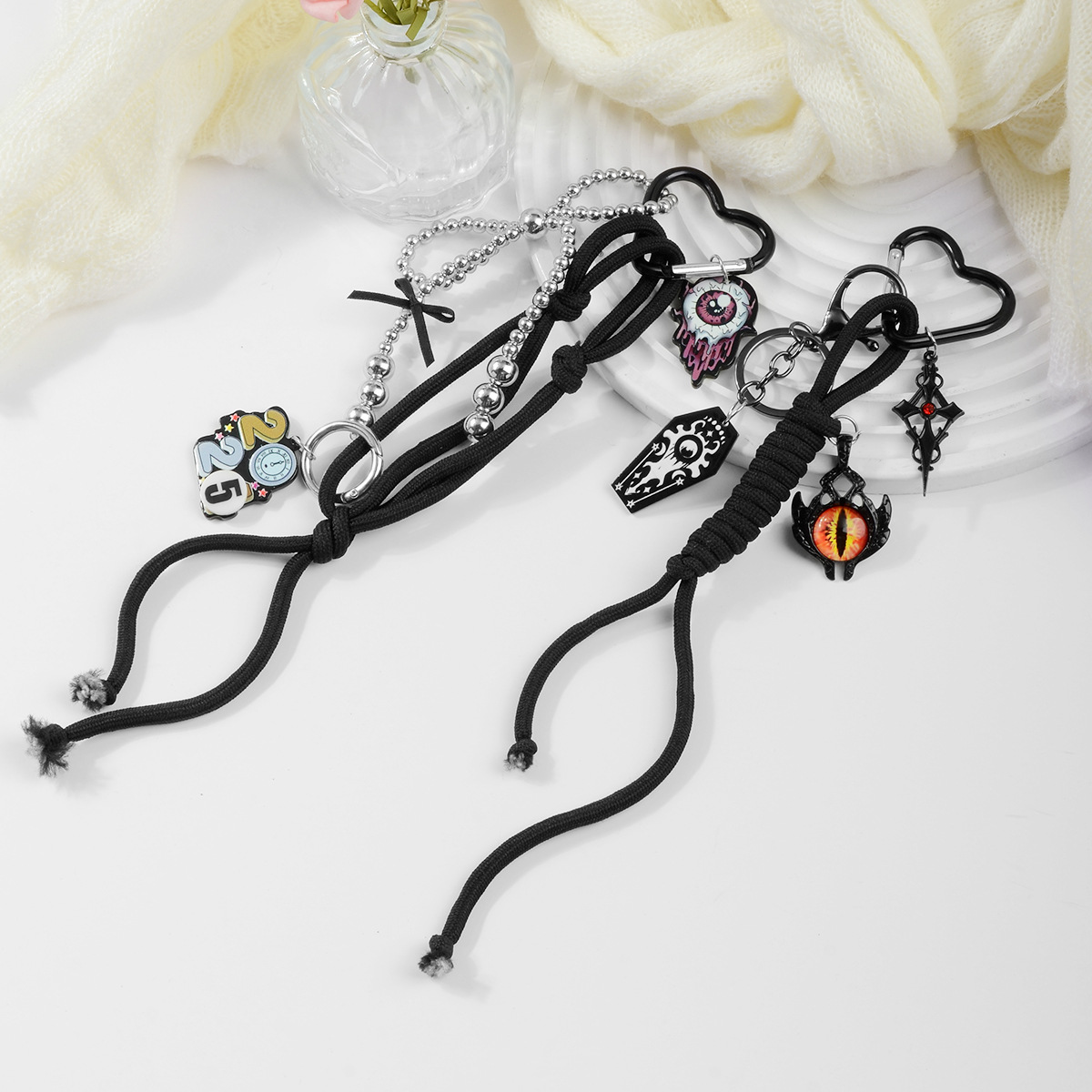 クロスボーダー爆金ファッション暗黒ゴシックCCBビーズ蝶ネクタイアクリル悪魔の目登山ロープキーホルダー