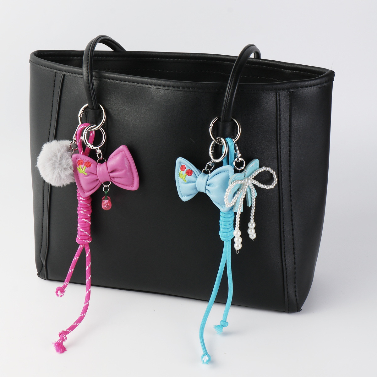 国境を越えて起爆した洗練された贅沢な高颜値毛玉皮革刺繍真珠蝶ネクタイさくらんぼDIYキーホルダー