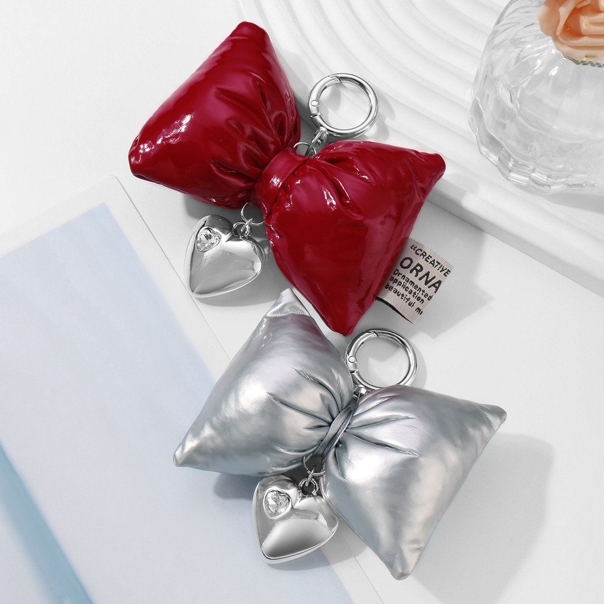 クロスボーダー爆金y 2k精緻な個性暗黒風皮革刺繍蝶結び毛玉愛鏡DIYキーホルダー