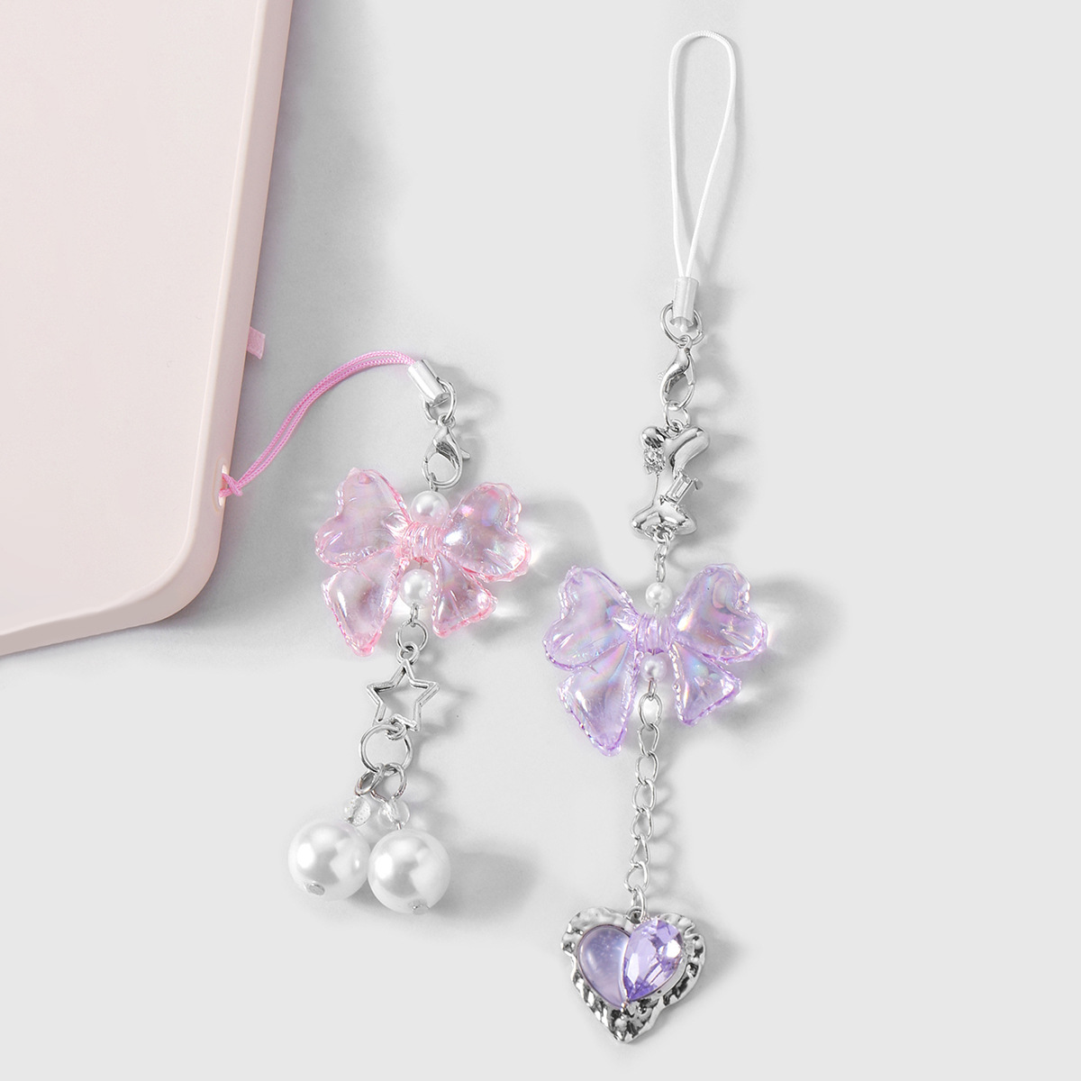 国境を越えて起爆したinsは洗練されたシンプルで透明な真珠の蝶ネクタイの星セットの携帯電話のペンダントのキーホルダーを真似ている