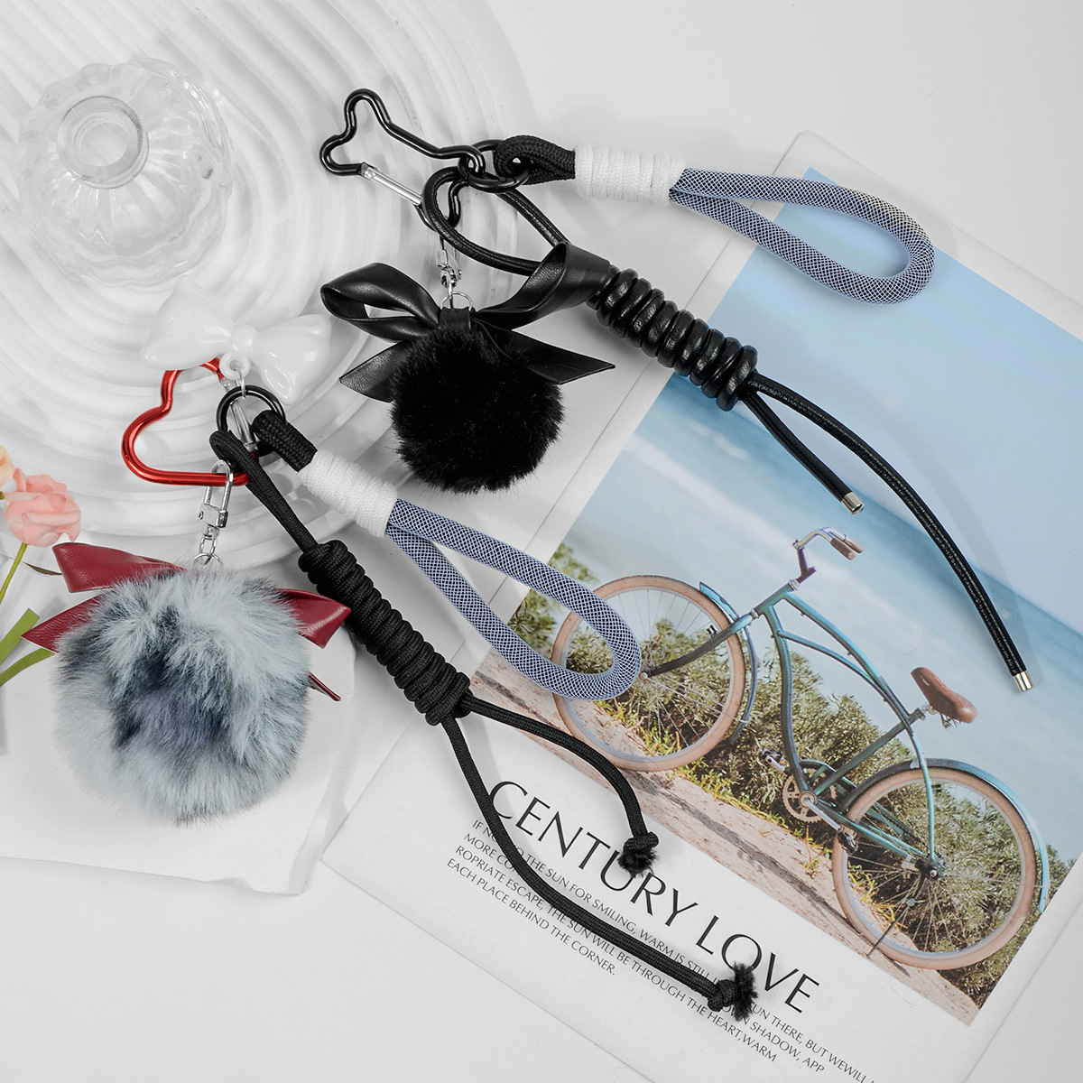 クロスボーダーy 2k甘いクールな暗黒のゴシックの黒い毛玉の蝶結びの柳の星の愛のDIYのキーホルダーのペンダント