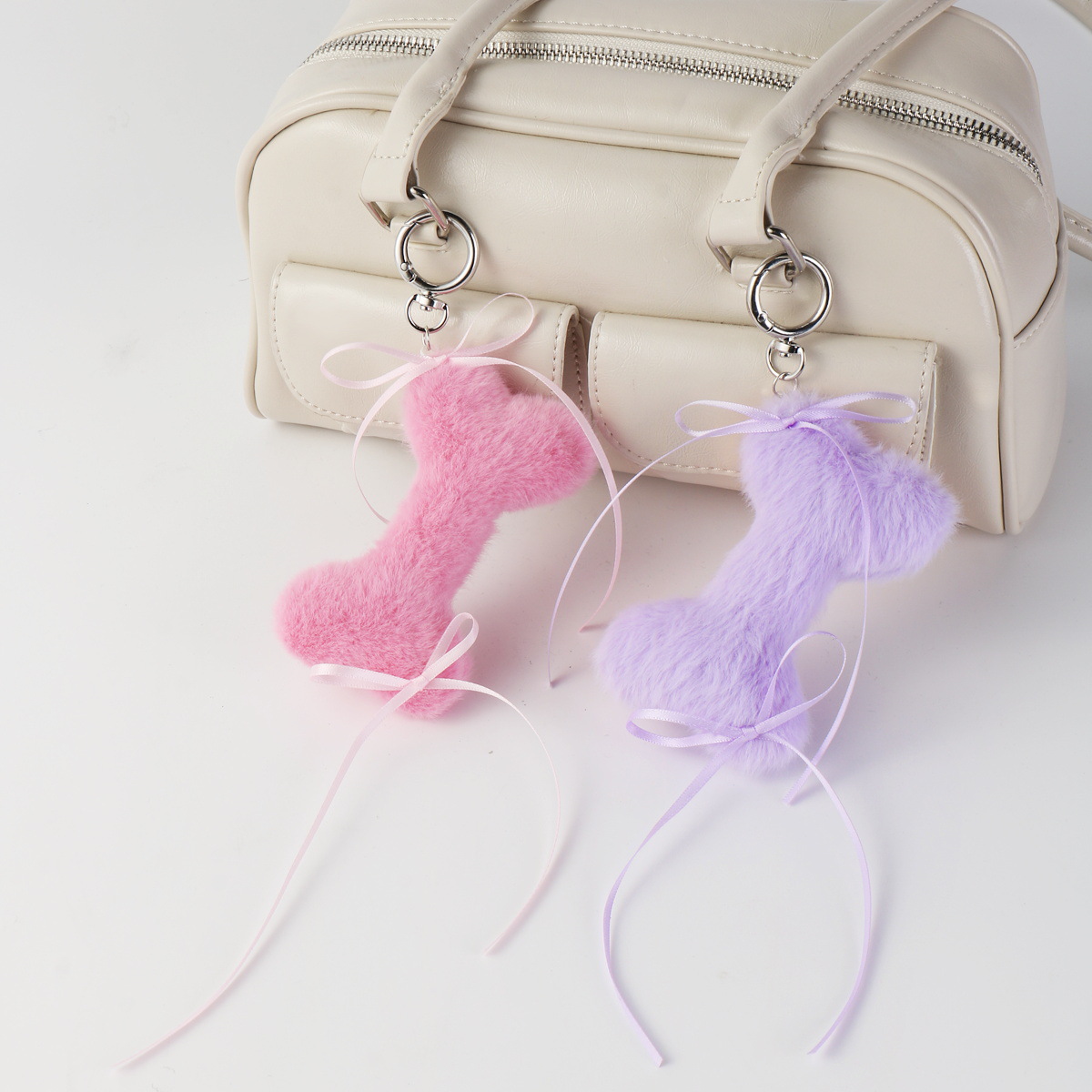 国境を越えて起爆したins甘いクールで洗練されたファッション的な白いヒョウ柄のベルベットバッグ革蝶ネクタイ愛DIYキーホルダー