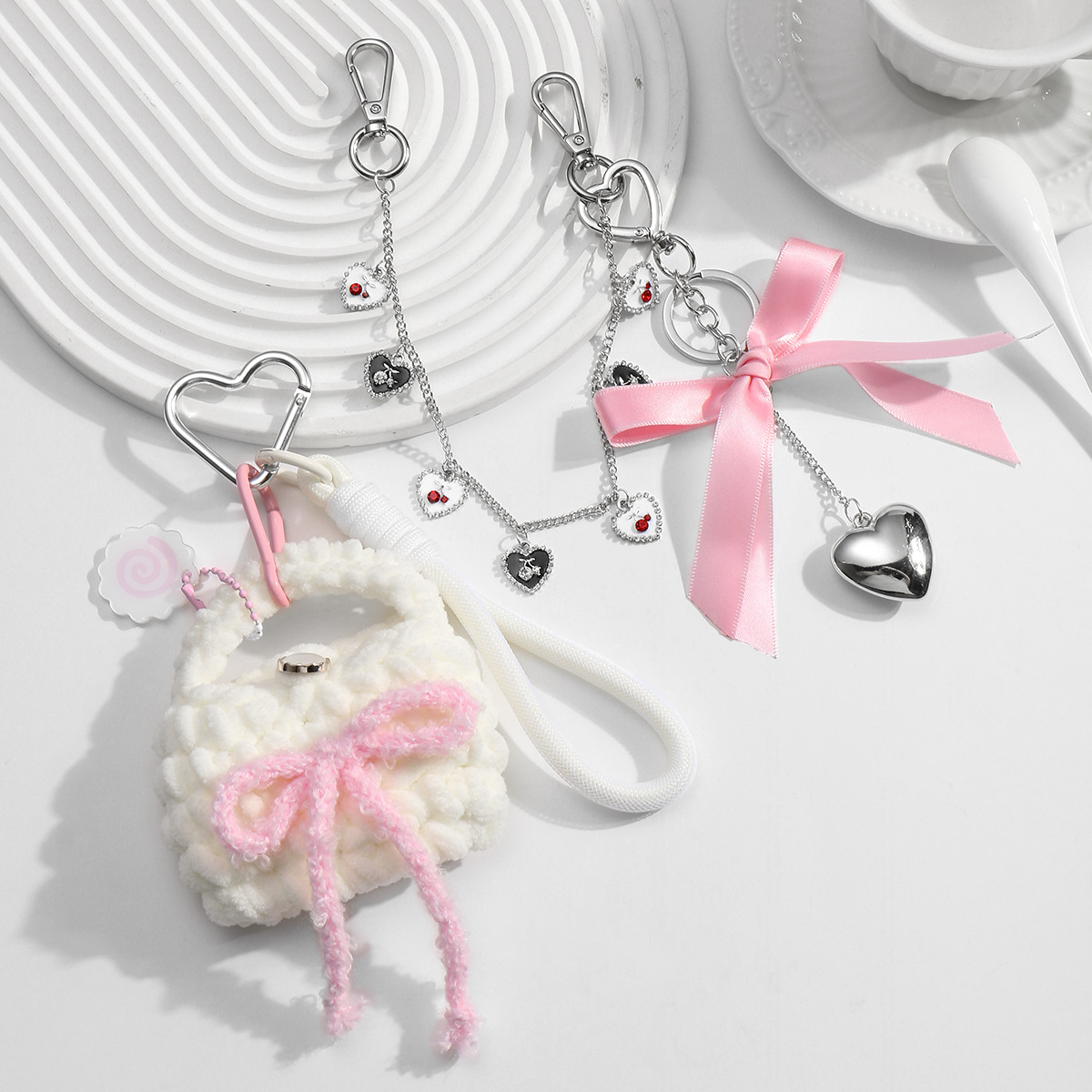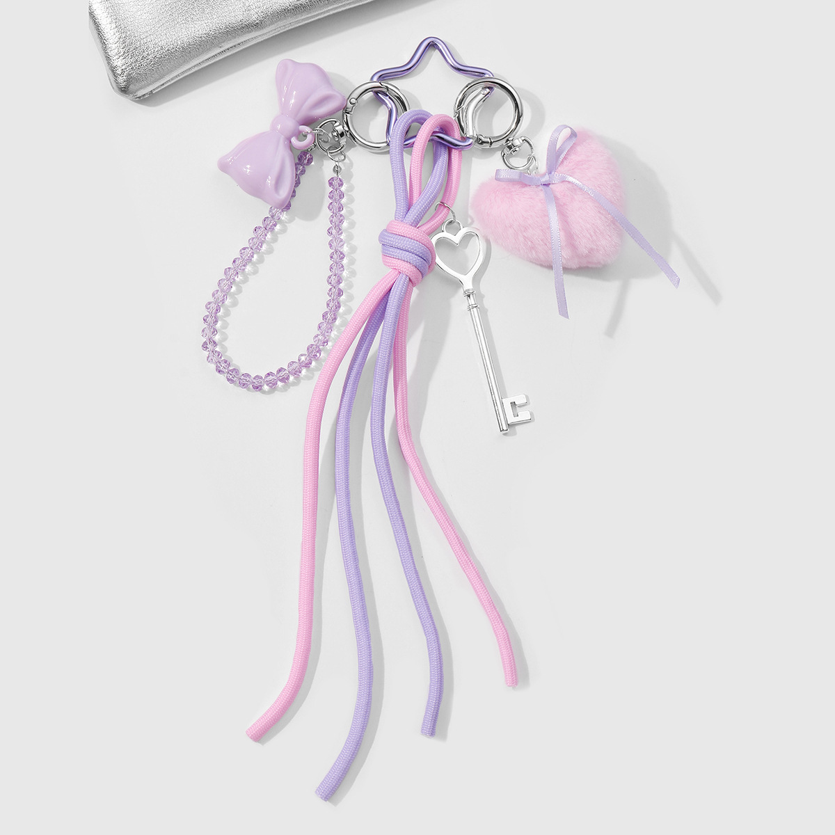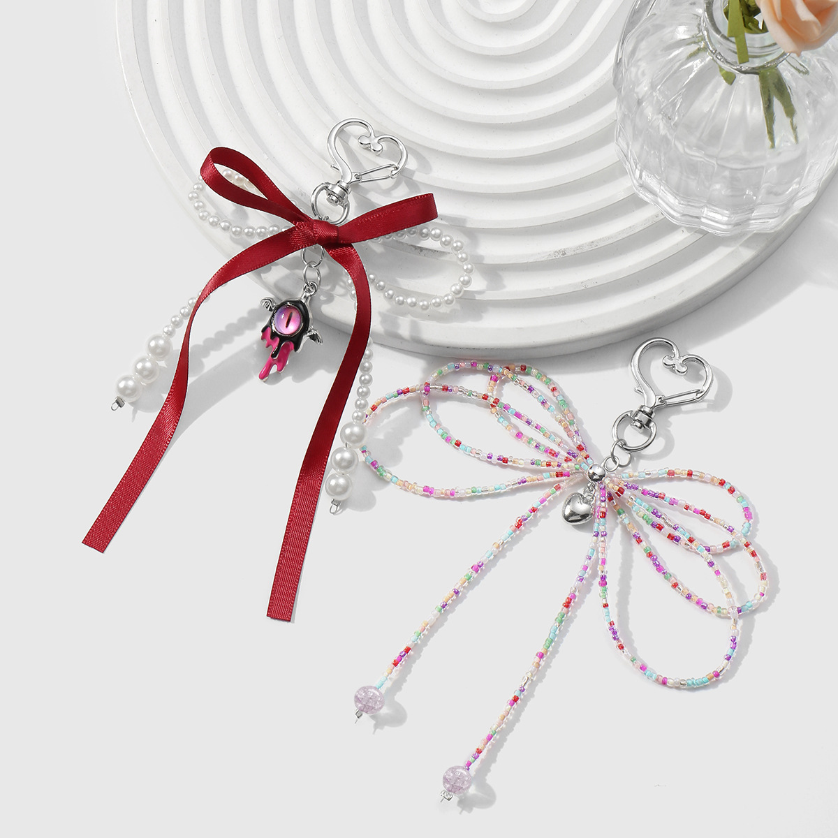 クロスボーダー爆金y 2k甘美シンプル高颜値ピンク毛玉ビーズ蝶ネクタイ愛炎DIYキーホルダー