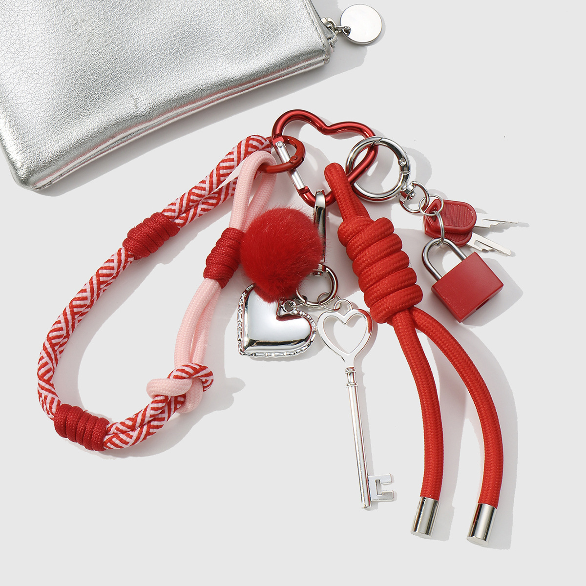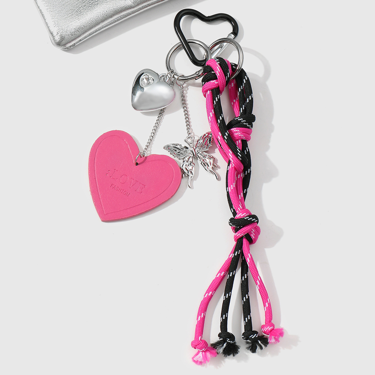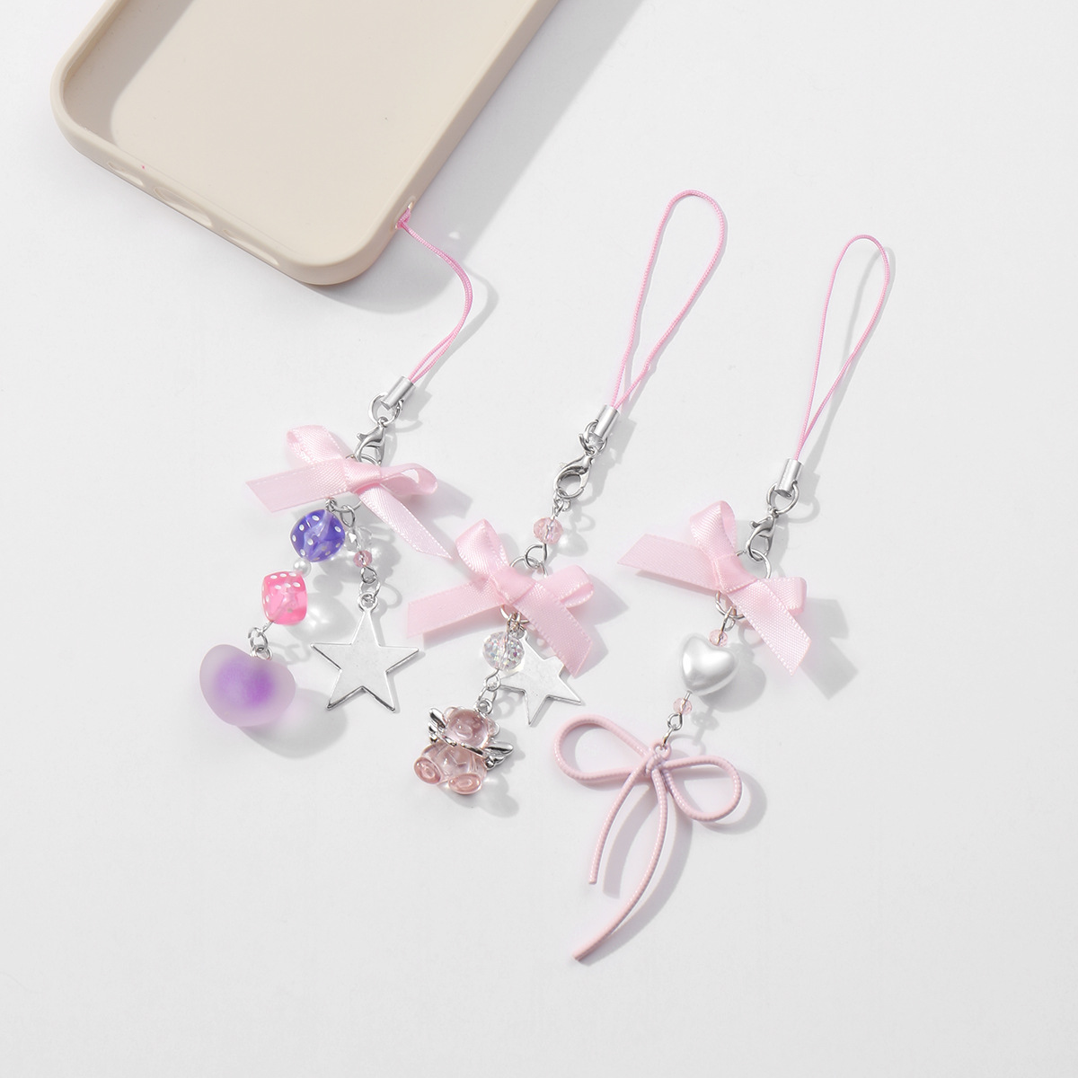 クロスボーダー爆金y 2k甘美シンプル高颜値ピンク毛玉ビーズ蝶ネクタイ愛炎DIYキーホルダー