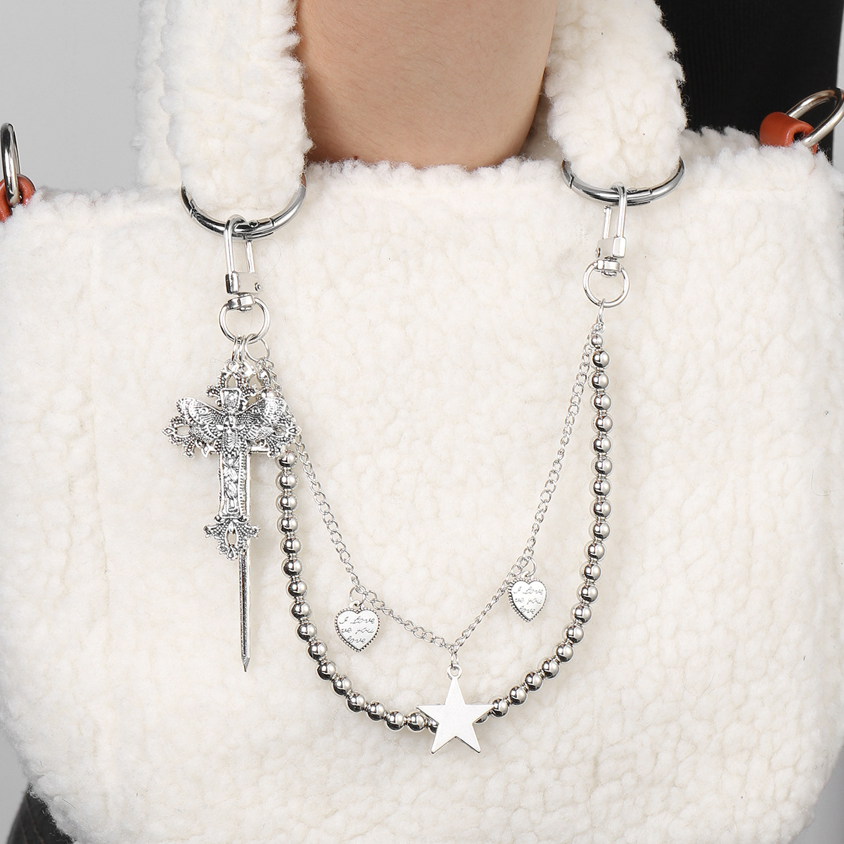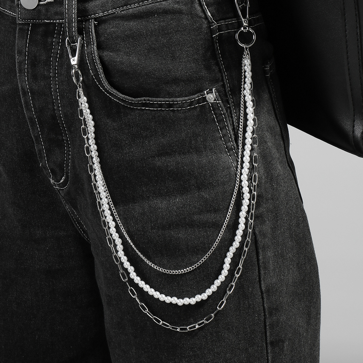 クロスボーダーの爆発金y 2kの潮流の精巧な銀色のチェーンの白い数珠は真珠の蝶の星をまねてズボンのチェーンを飾ります。