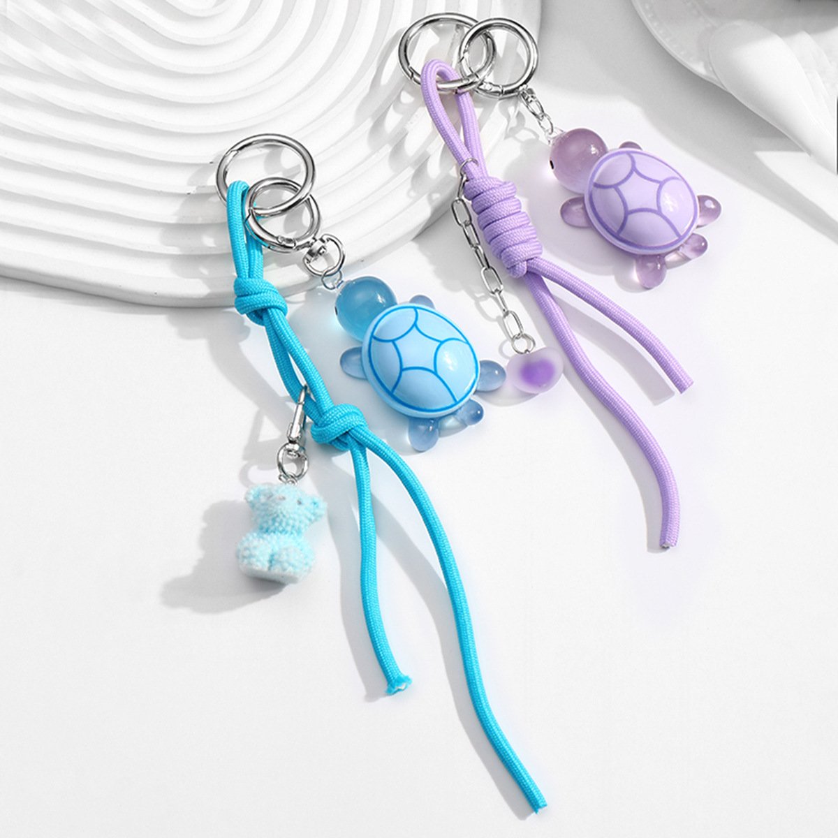 クロスボーダー爆発かわいいアニメ甘い紫色の青い樹脂シミュレーション亀愛熊ペンダントキーホルダー
