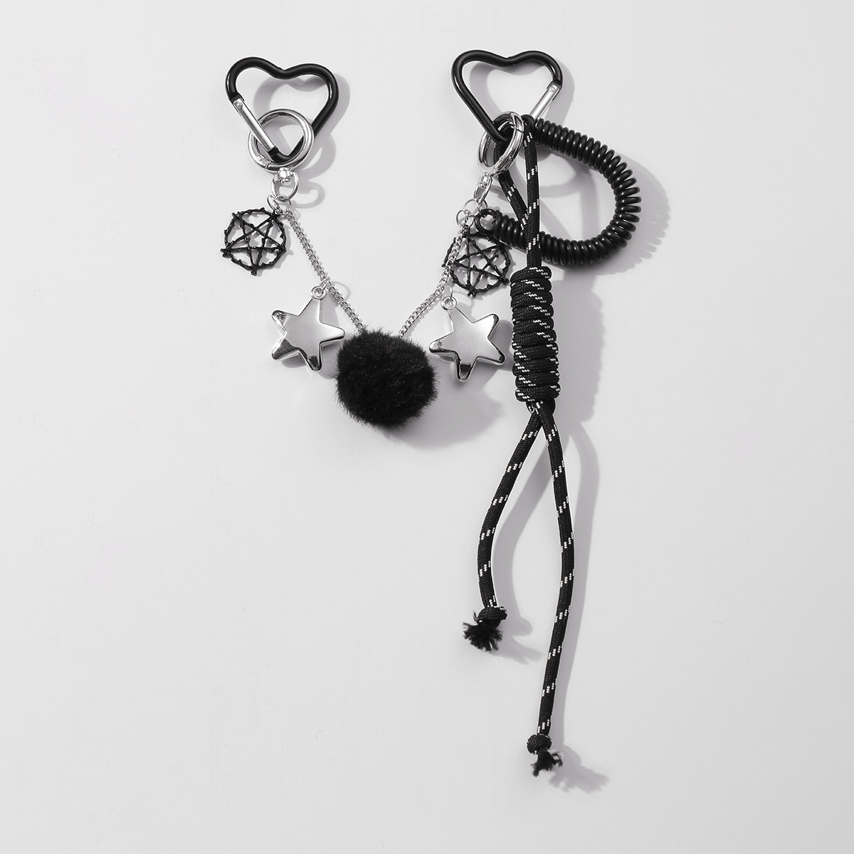 国境を越えた爆発的な潮流暗黒ゴシックの黒いベルベットの透かし彫りの愛の星はペンダントのキーホルダーを調節できる