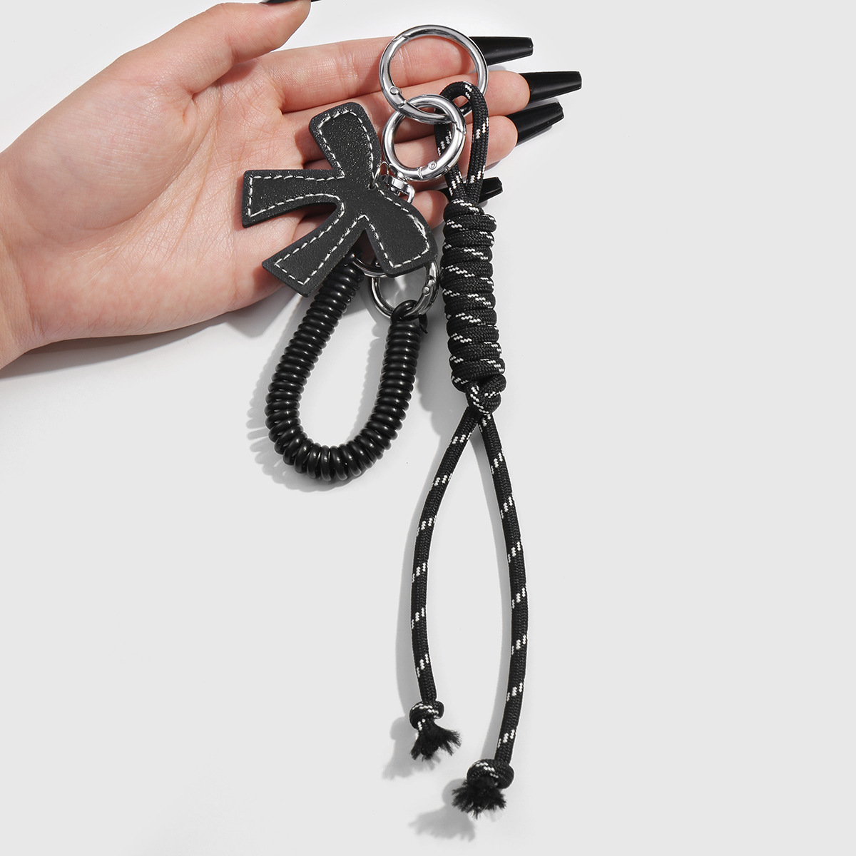 国境を越えて爆発した甘いクールな暗黒ゴシック黒/薔薇赤/紫色皮革蝶ネクタイ電話線吊り紐キーホルダー