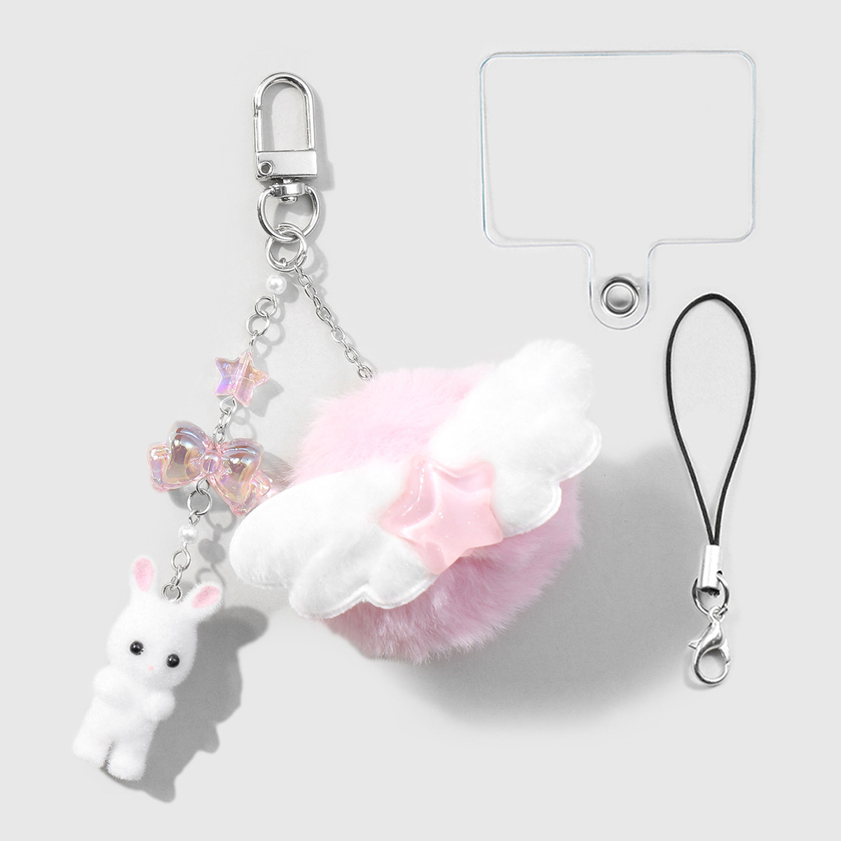 クロスボーダーの甘い秋冬の甘いアニメの精巧な毛玉の翼の星の蝶結びの植毛の立体のウサギのキーホルダー
