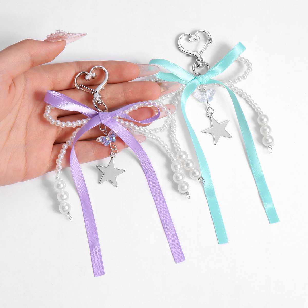 クロスボーダーの爆発金は簡単でカジュアルな組み合わせです。手作りのビーズは真珠のリボンの星のペンダントのキーホルダーに似せています。