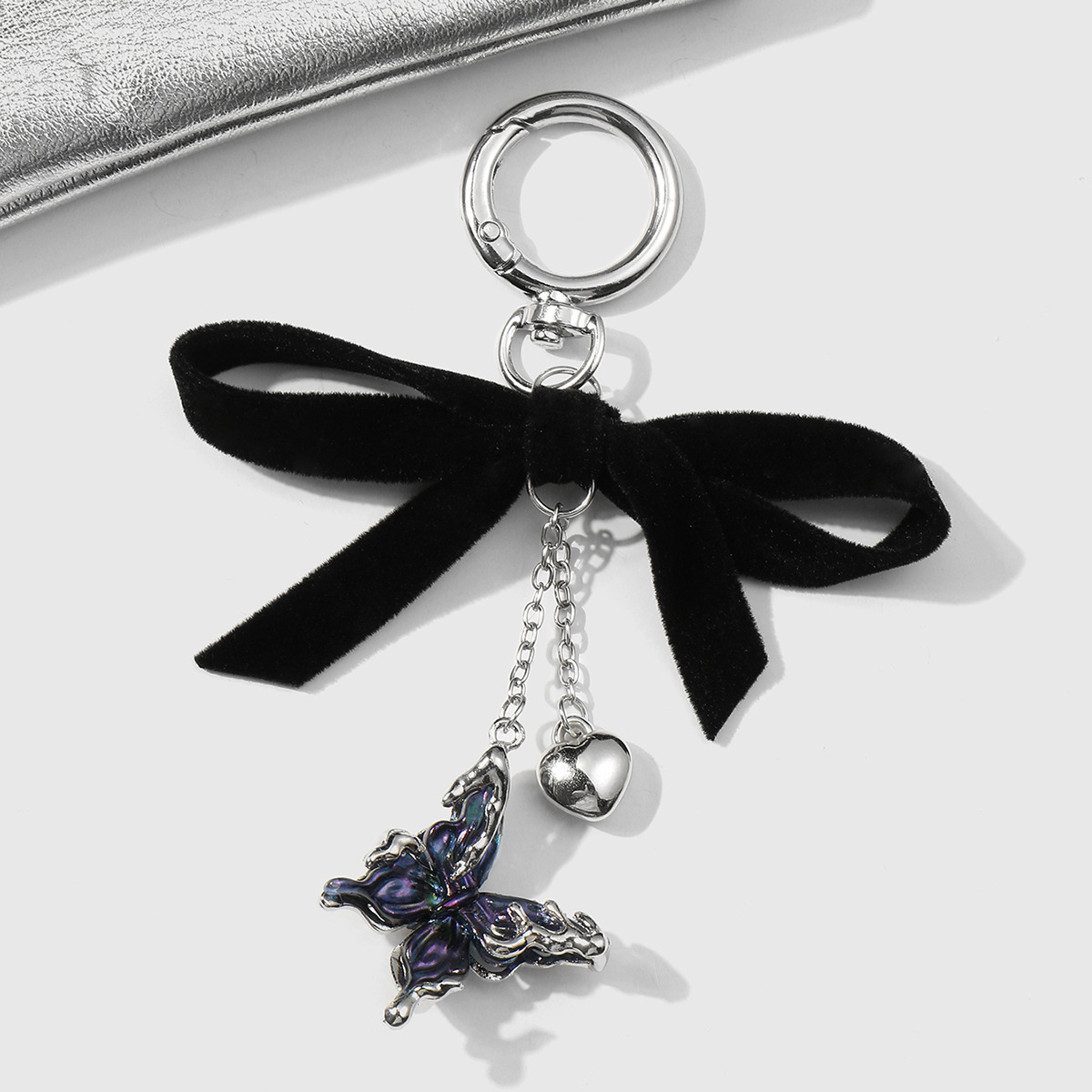 クロスボーダー爆金ins超仙甘酷軽豪華銀色立体愛模造水晶暗紫色蝶キーホルダー
