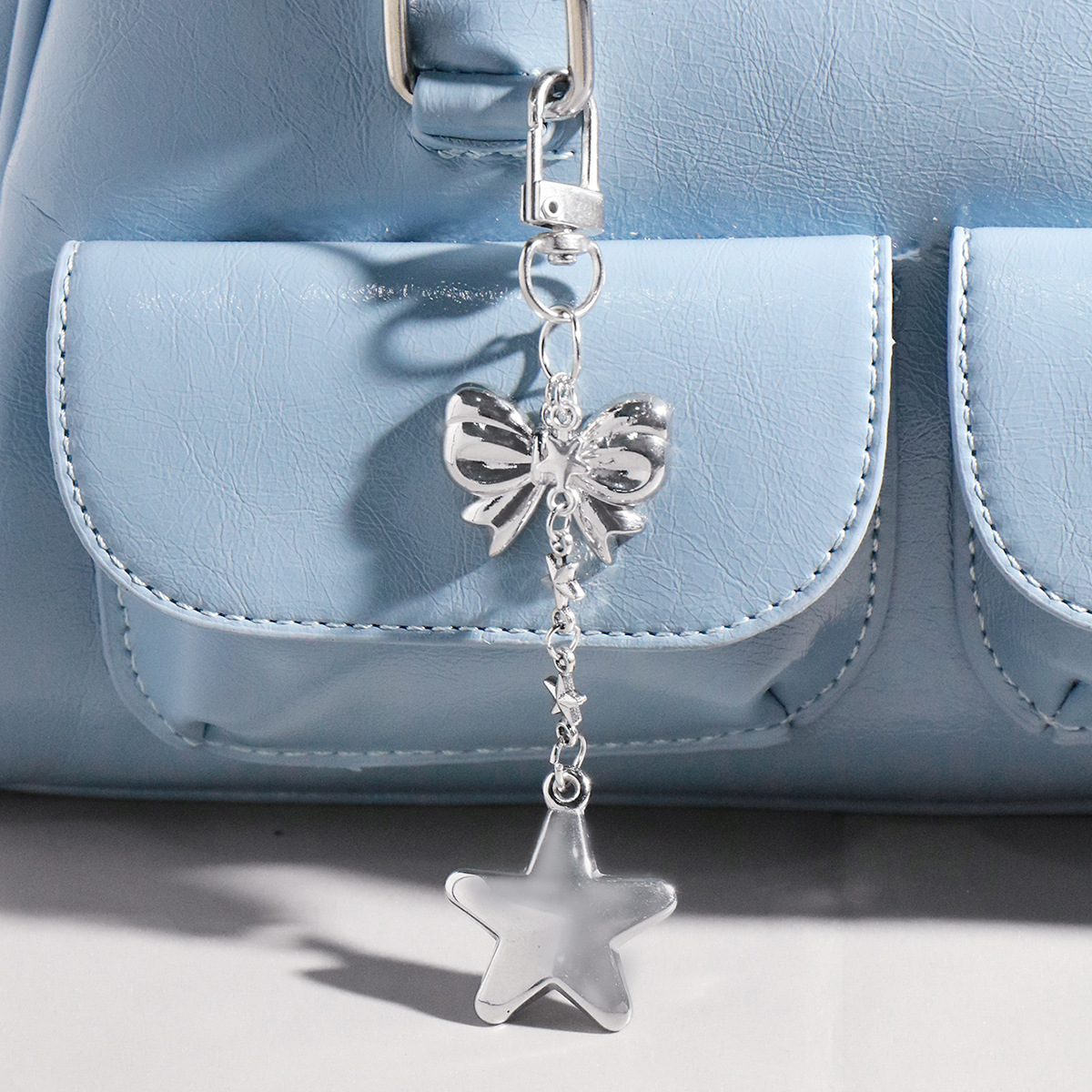 クロスボーダー爆発ファッションシンプルな銀色のチェーンの蝶結びの星の愛の黒色のリボンのペンダントのキーホルダー